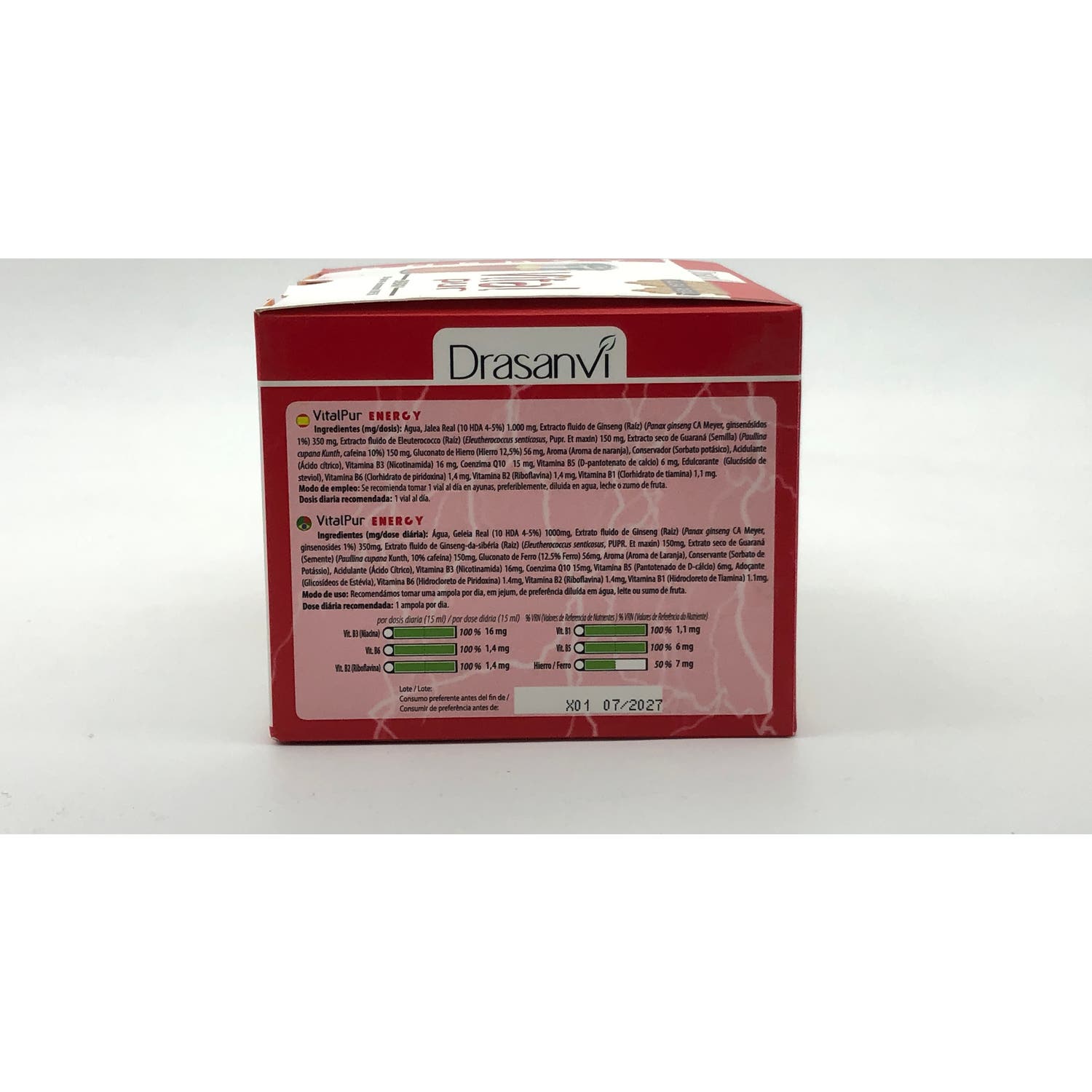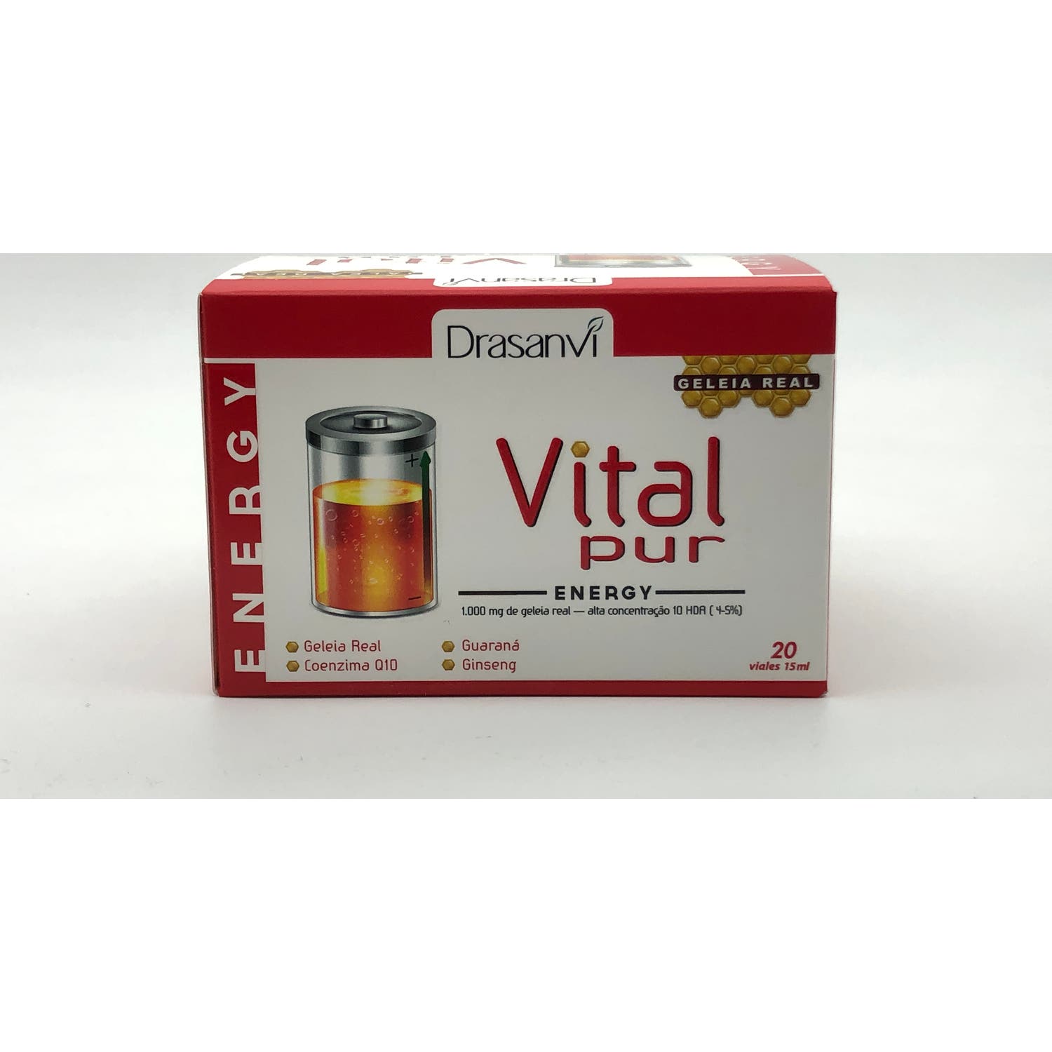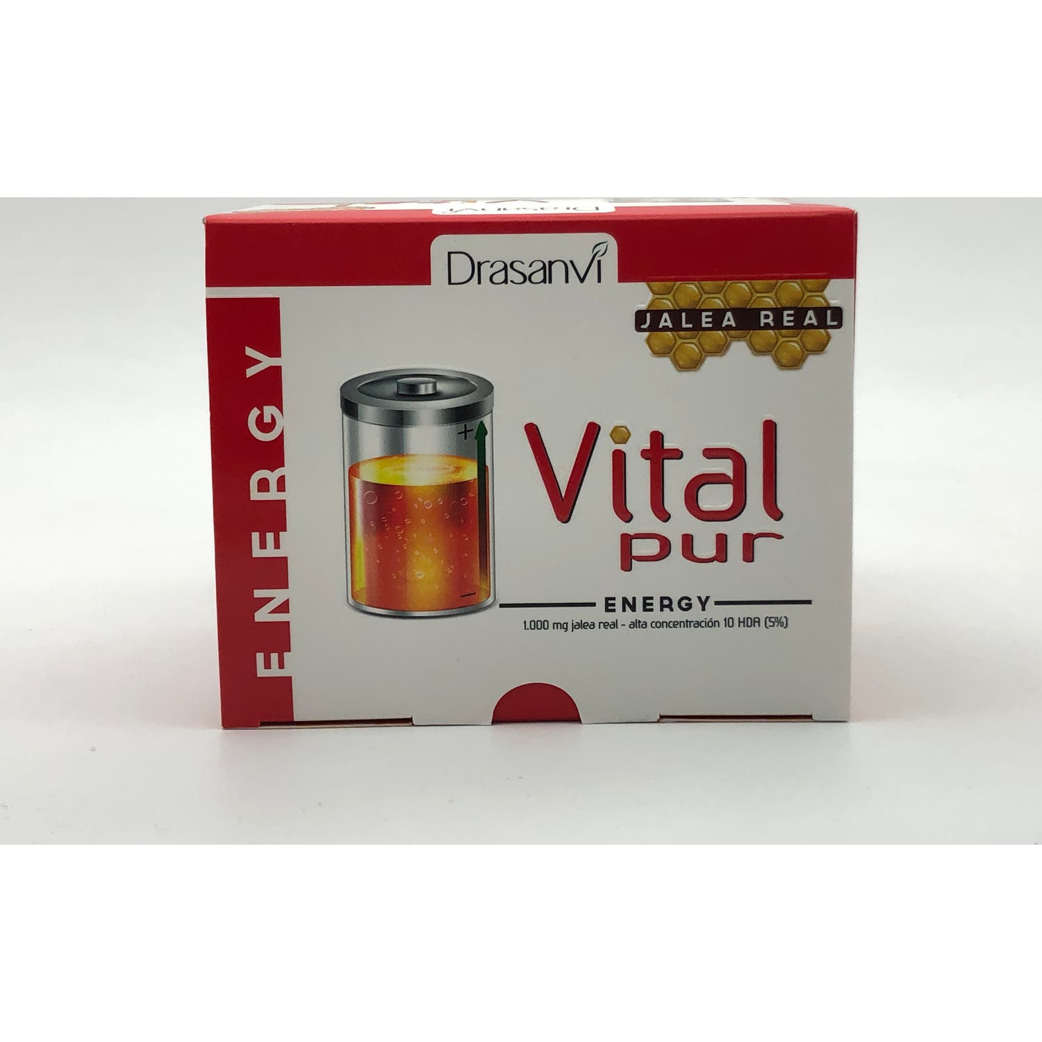 Vitalpur Jalea Real Energy es un complemento alimenticio de Drasanvi elaborado con jalea real que ayuda a disminuir el cansancio y fatiga. Recomendado para personas con ritmos de vida ajetreados y que necesiten un aporte de energía extra para afrontar el día. Además, contiene vitaminas, ginseng, guaraná, eleuterococo y hierro.
