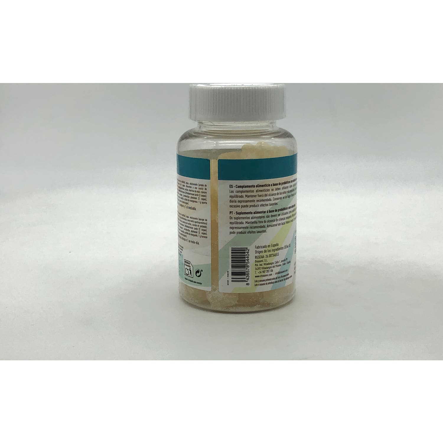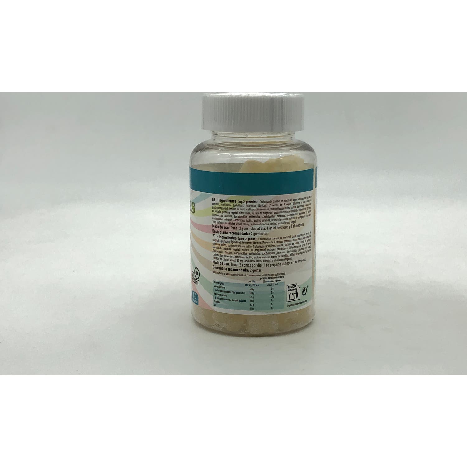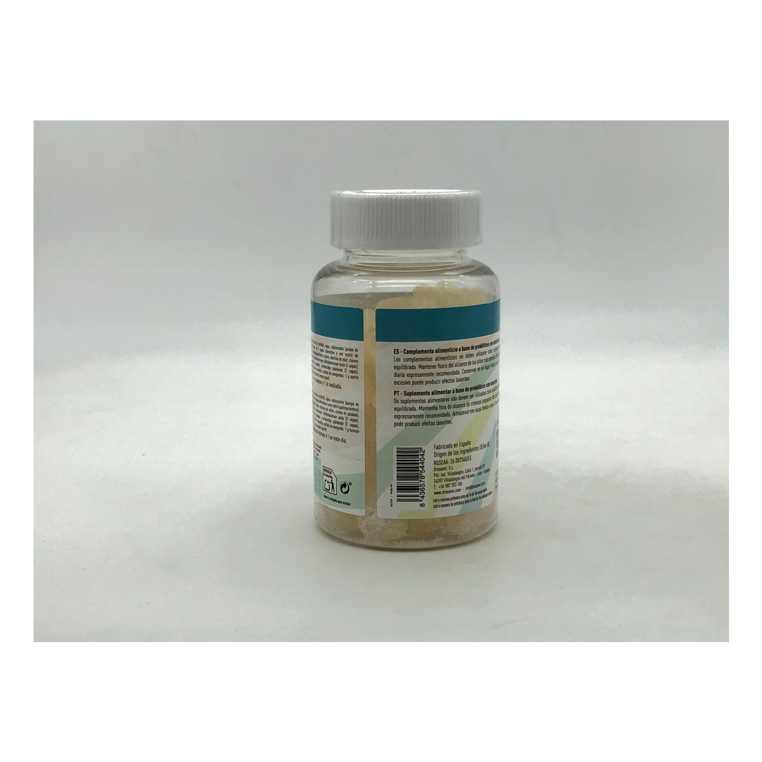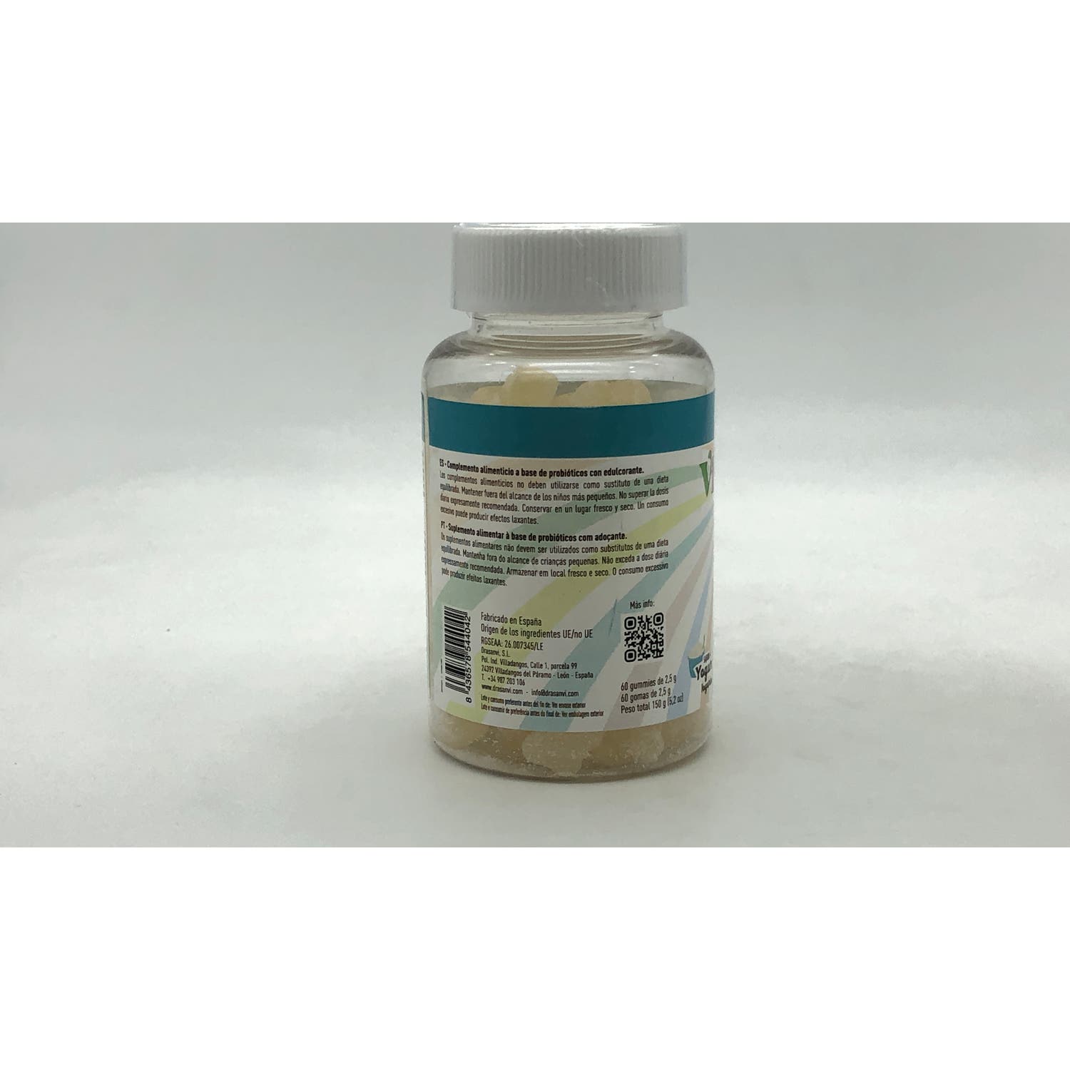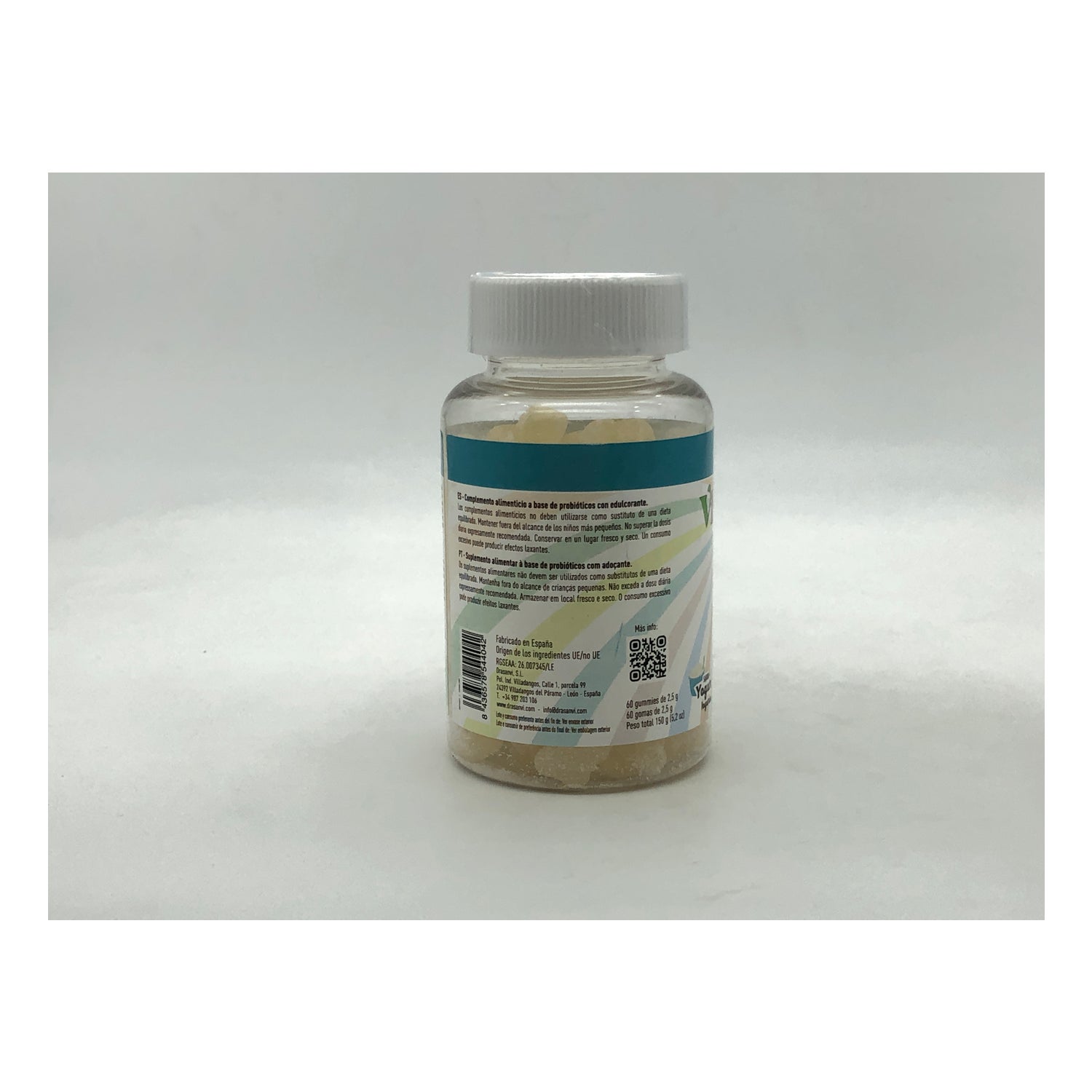 Complemento alimenticio en formato gominola que contribuye a mantener en buen estado la flora intestinal y mejora las defensas del sistema inmunitario. Según recogen la FAO y la OMS, los probióticos son microorganismos vivos que, administrados en cantidades adecuadas, confieren un beneficio a la salud.