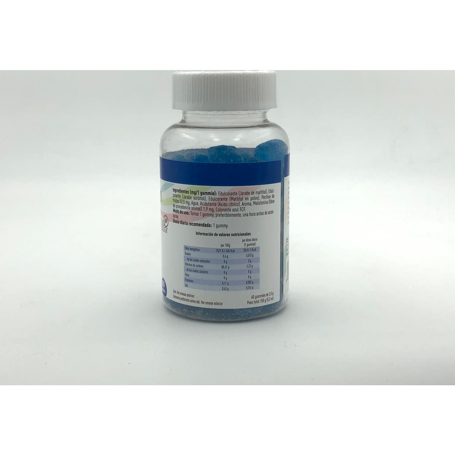 Cada gominola contiene 1,9 mg de melatonina pura, una hormona que es segregada de manera natural por la hipófisis y regulada por la presencia de luz, contribuye a disminuir el tiempo necesario para conciliar el sueño.