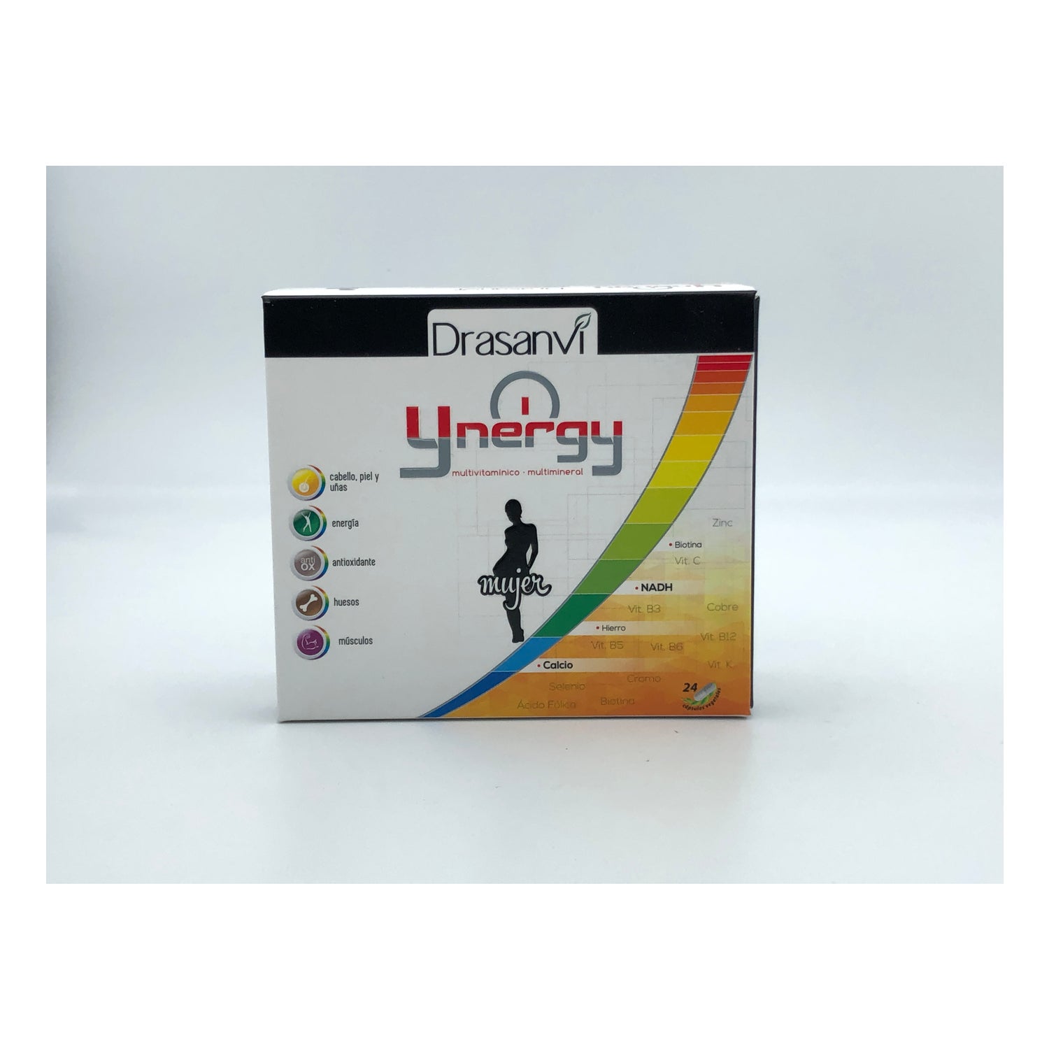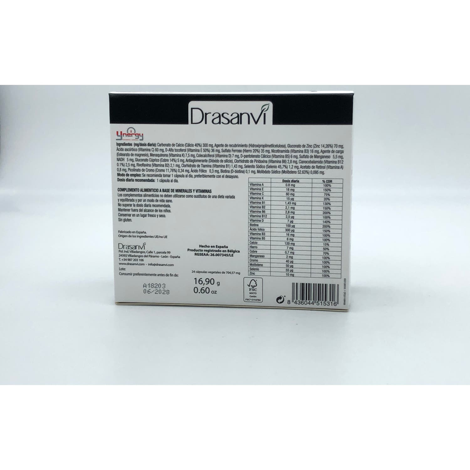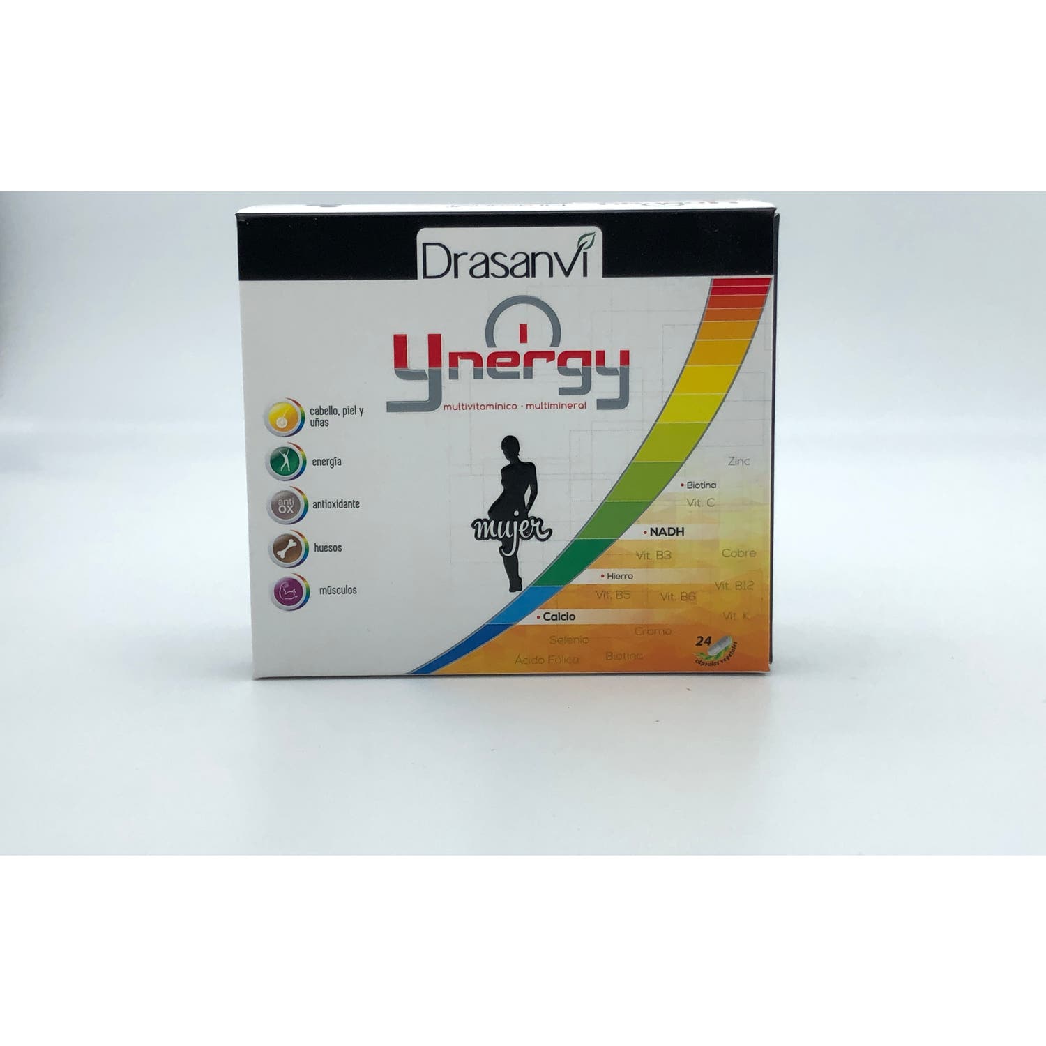 Drasanvi Ynergy Mujer 24 Cáps es complemento multivitamínico y multimineral formulado especialmente para mujeres. Su excelente combinación de 21 vitaminas y minerales se ha enriquecido con NADH un cofactor del metabolismo que está implicado en multitud de procesos del organismo y destaca por su obtención de energía