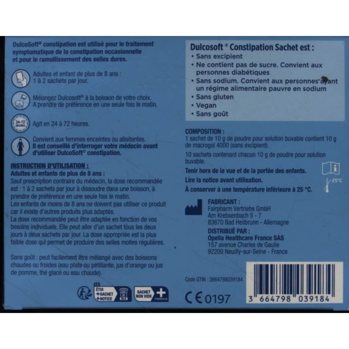 Actúa como un medio de transporte de líquido y retrasa la absorción intestinal de agua, lo que provoca un aumento de la cantidad de agua en el colon. Suaviza las heces duras y aumenta su tamaño. Esto conduce a acelerar el tránsito y facilitar la evacuación, proporcionando una sensación de alivio natural. Macrogol 4000 tiene un modo de acción puramente físico: no es absorbido por el cuerpo y se excreta sin cambios.