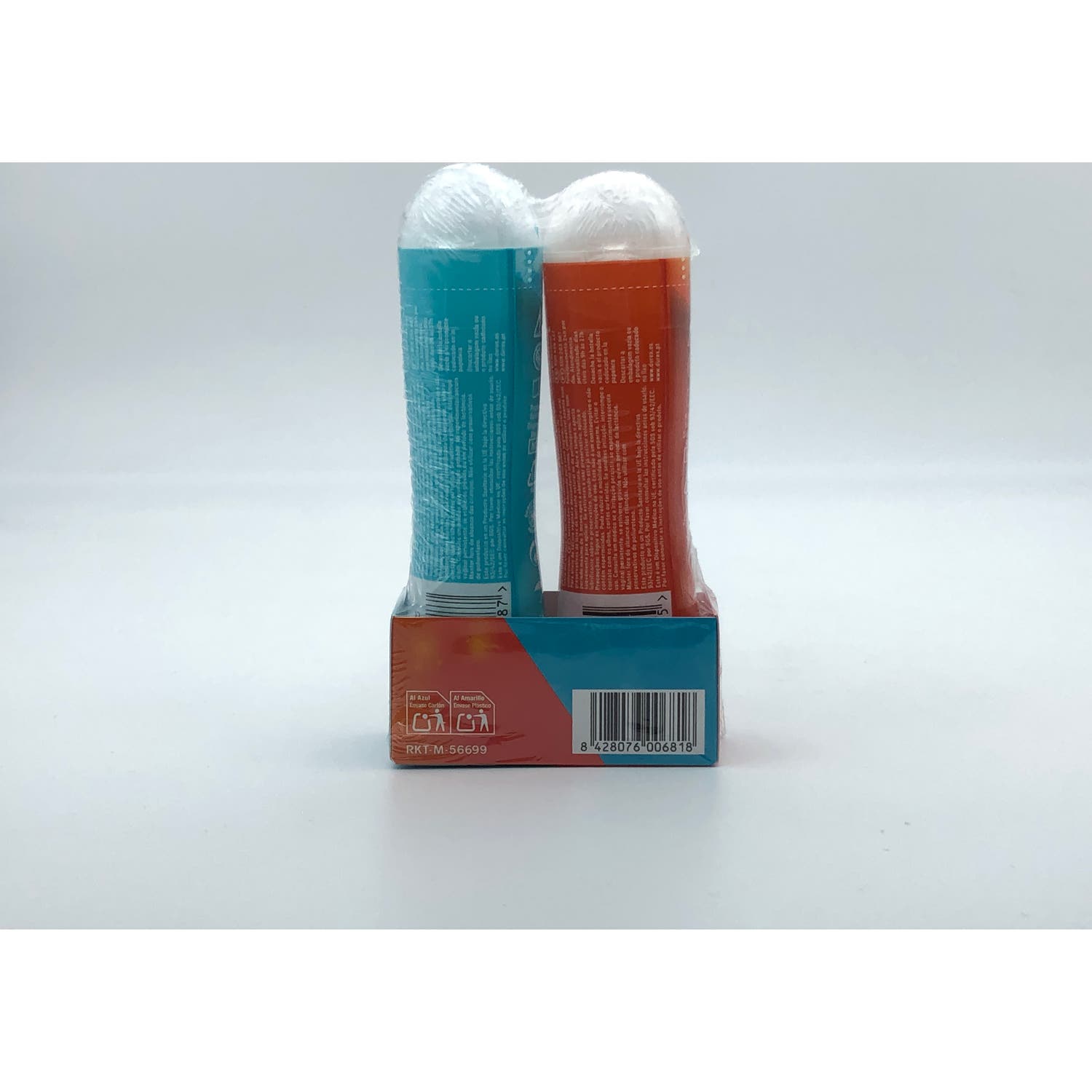 Pack de dos botellas de lubricantes que incluye un gel de efecto frío y uno de efecto calor. Ayuda a intensificar las sensaciones placenteras durante las relaciones sexuales. Ambas fórmulas son aptas para penetración anal y vaginal. Compatibles con todos los preservativos de la marca.