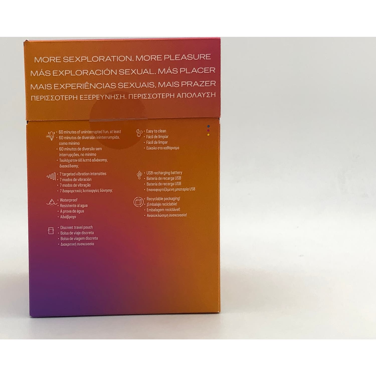 Tiene 7 modos de vibración y resistente al agua. Duración de la batería: 60 minutos. Compatible con lubricante de base acuosa.