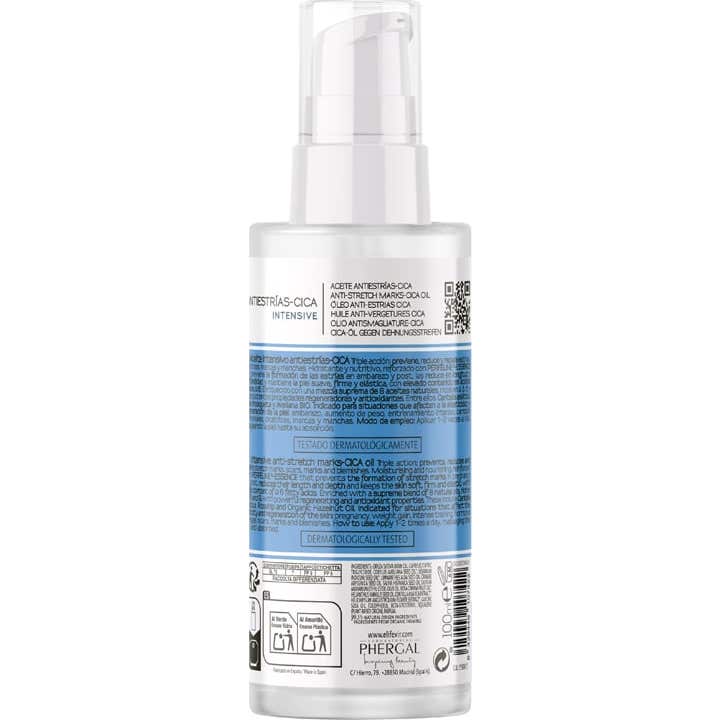 E'lifexir Dermo Antiestrias CICA Intensive Aceite es un tratamiento eficaz que ofrece una triple acción para prevenir, reducir y reparar: