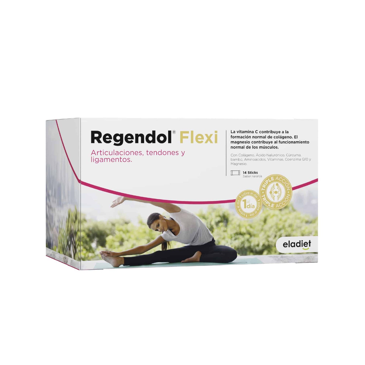 Complemento alimenticio en formato sticks. Elaboradas a base de colágeno, ácido hialurónico, cúrcuma, bambú, aminoácidos, vitamina C, coenzima Q10 y magnesio.La vitamina C contribuye a la formación normal de colágeno para el funcionamiento normal de los cartílagos. El magnesio contribuye al funcionamiento normal de los músculos.