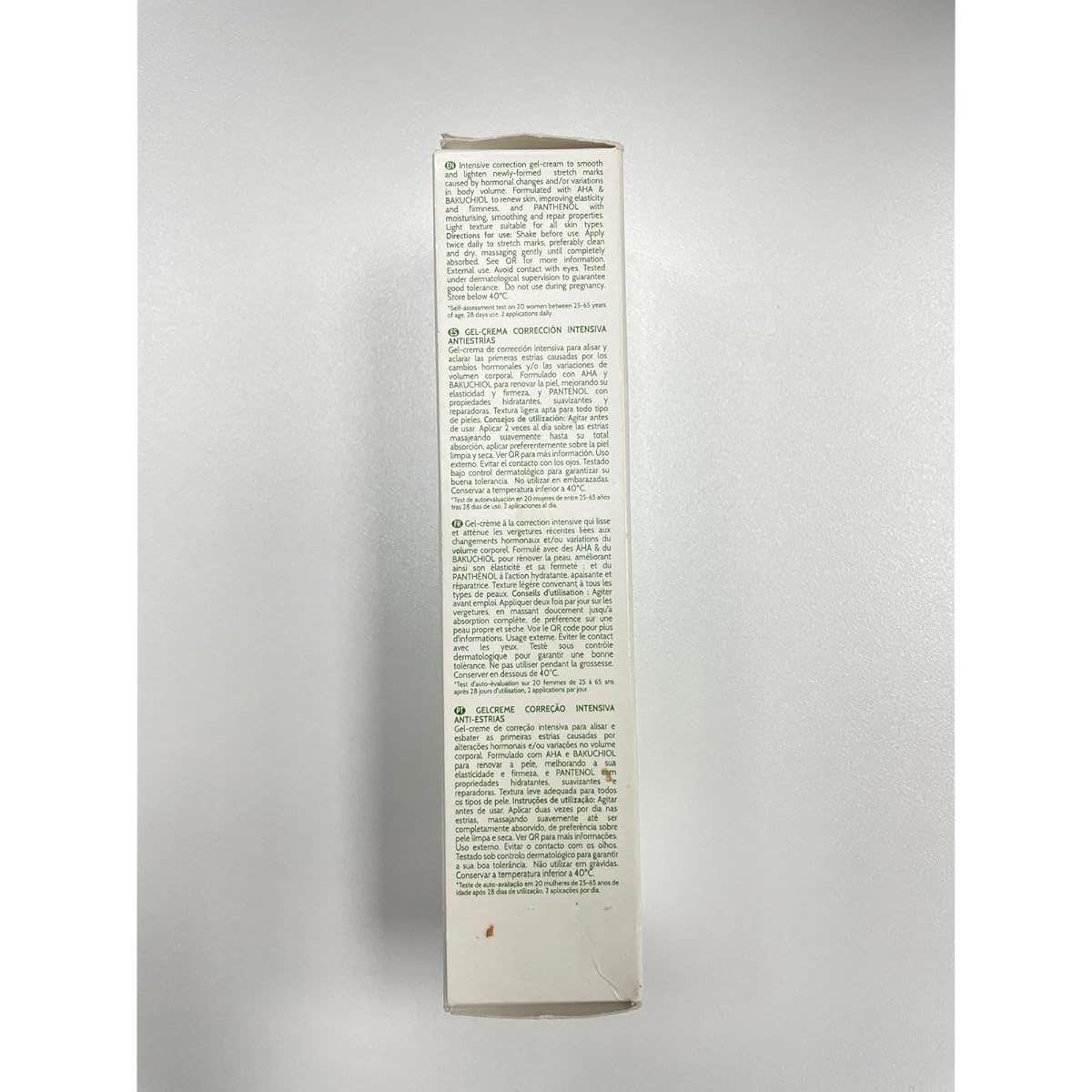 Tratamiento para el cuidado corporal en formato gel que combina diferentes ingredientes activos que ayudan a mantener la elasticidad de la piel, prevenir la formación de nuevas estrías y reducir la apariencia de las estrías existentes. Tiene propiedades hidratantes y elastizantes que contribuyen a mejorar la apariencia cutánea. Apto para todo tipo de piel.
