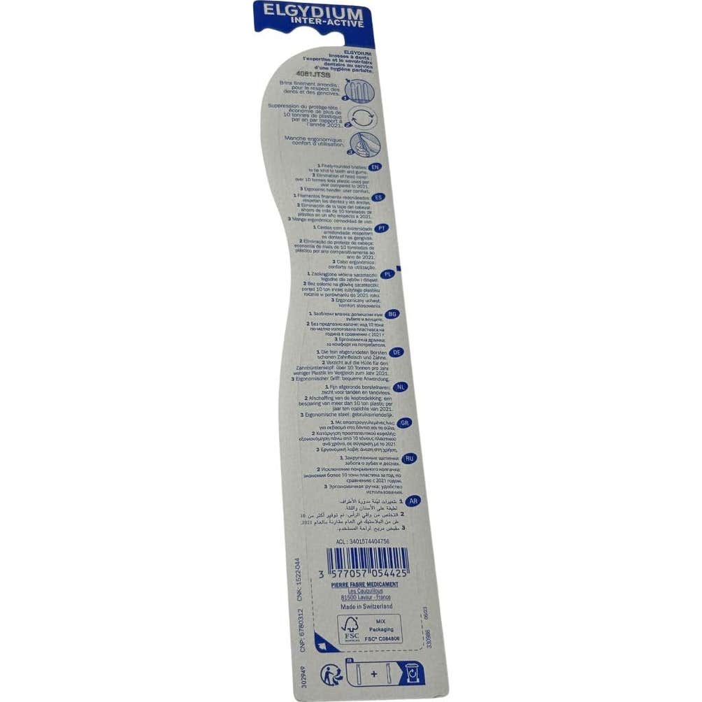 Elgydium Inter-Active Cepillo de Dientes Suave 1ud es un cepillo dental clásico de dureza baja que facilita una limpieza bucodental óptima.