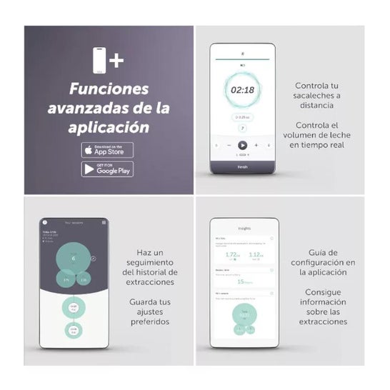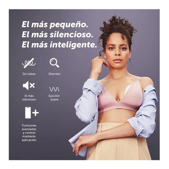 Este extractor de leche materna tiene una aplicación móvil a la que se puede conectar para controlar el aparato que incluye funciones inteligentes adicionales. Además, es de muy fácil colocación y se puede incorporar a un sujetador de lactancia estándar.