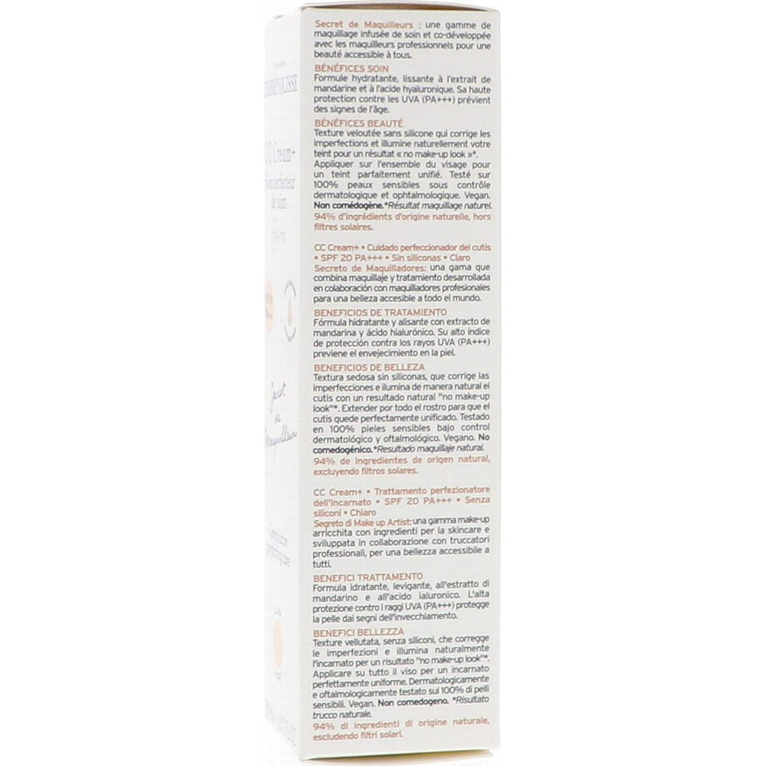 Embryolisse Secret de Maquilleurs CC Cream+ Spf20 Claro es un innovador producto de maquillaje y cuidado de la piel. Su fórmula está compuesta por un 94% de ingredientes de origen natural, excluyendo los filtros solares, lo que la convierte en una opción saludable para el cuidado facial. Esta crema ofrece una protección solar SPF20 y PA+++, lo que ayuda a proteger la piel de los efectos nocivos del sol.