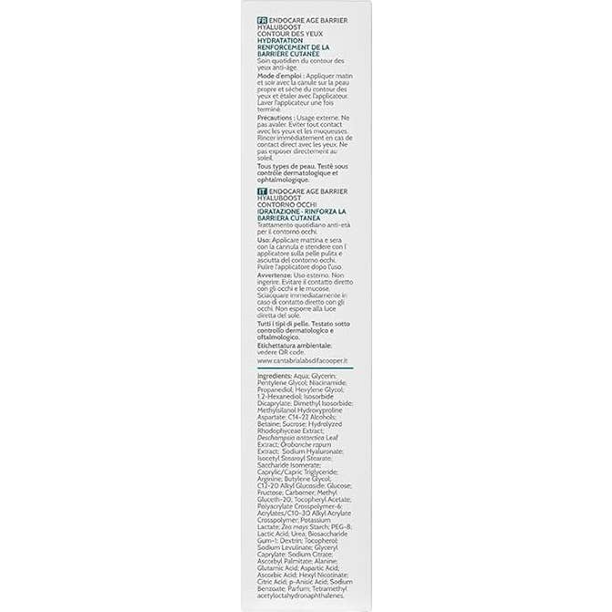 Endocare Age Barrier Hyaluboost Contorno de Ojos es un producto diseñado para combatir: