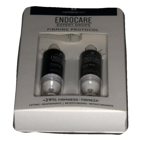 Endocare Expert Drops Firming Protocol 2x10ml es un dúo de sérums de día y noche, reafirmante y de peeling suave respectivamente.