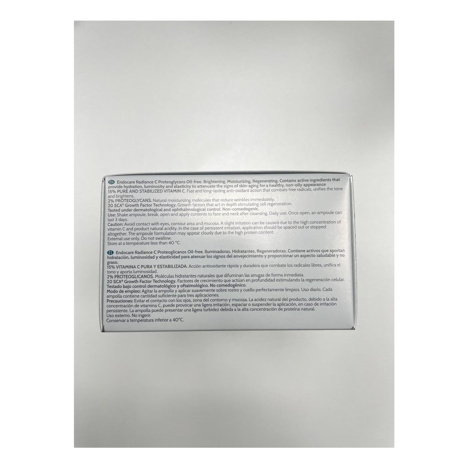 Endocare Radiance C Proteoglicanos Oil Free 30amp son ampollas intensivas de uso diario que actúan sobre los signos del fotoenvejecimiento y ayudan a prevenirlos.