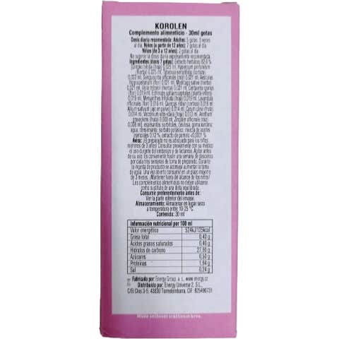 Extracto de hierbas (ginkgo, lapacho, hierba de San Juan, castaño de indias, cardo esférico glandular, trébol febril, botón de prado grande, lavanda, alfalfa, arándano rojo, roble inglés, alcaravea, eneldo, jengibre, pensamiento silvestre, aciano, ajo, una mezcla de aceites esenciales cardomómicos (, eneldo, lavanda, litse, menta, muray, nardo, ruda, romero, palma rosada e ylang-ylang).