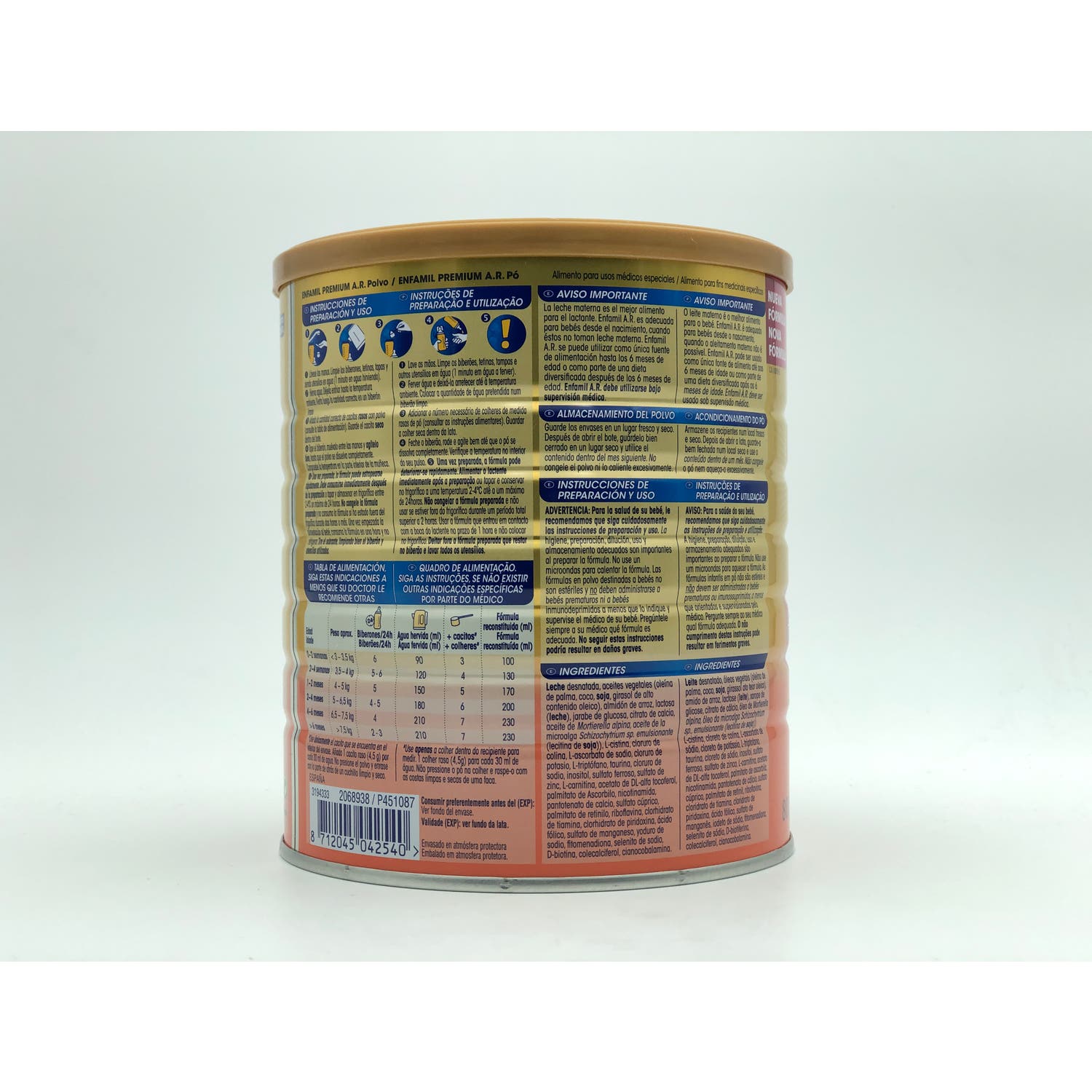 Enfamil Premium AR 800g es una leche de fórmula en polvo para el tratamiento dietético de la regurgitación.