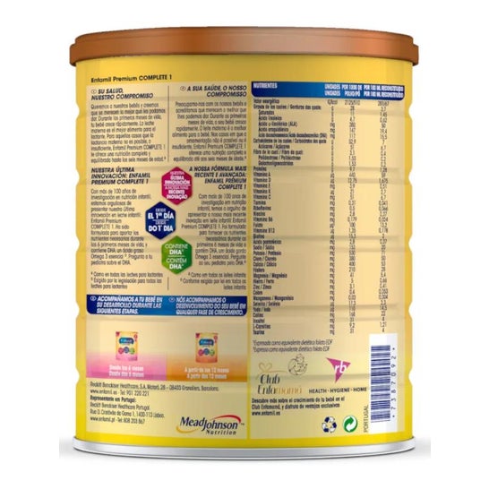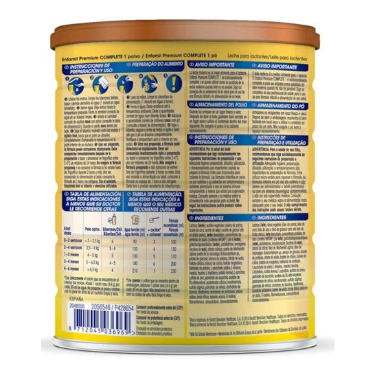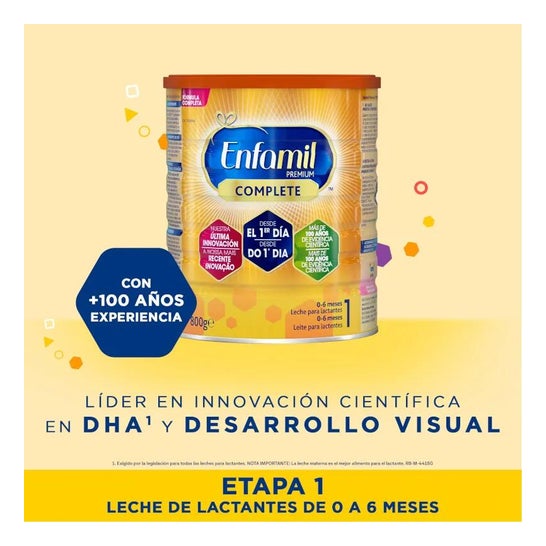 Enfamil Premium Complete 1 3x800g es leche de fórmula en polvo, desarrollada para aportar a los bebés las vitaminas y minerales que necesitan para favorecer su desarrollo de forma saludable.