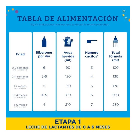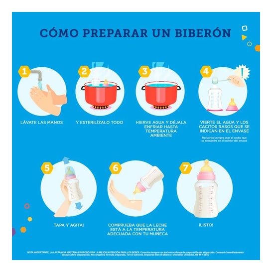 Mezclar el agua con las medidas indicadas en el envase o las instrucciones dadas por el pediatra.