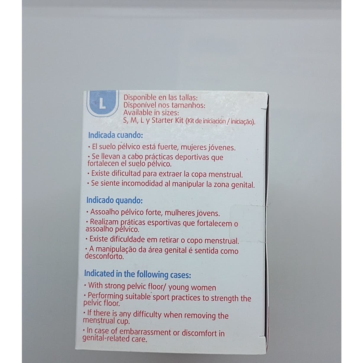 Copa menstrual talla L elaborada a base de silicona médica hipoalergénica biodegradable. Permite el recogido del fluido durante el periodo, de manera fácil, limpia y cómoda, gracias a su depósito.