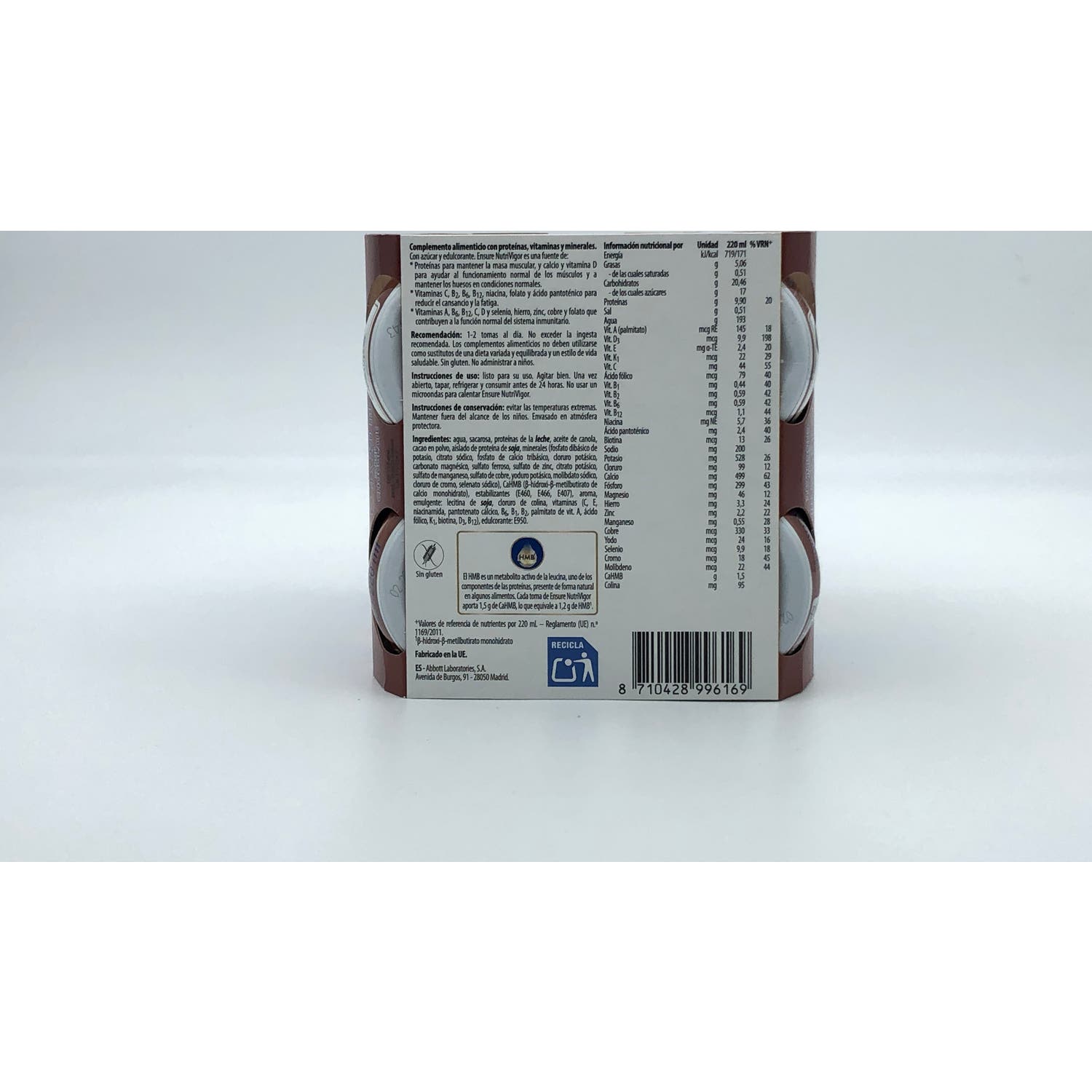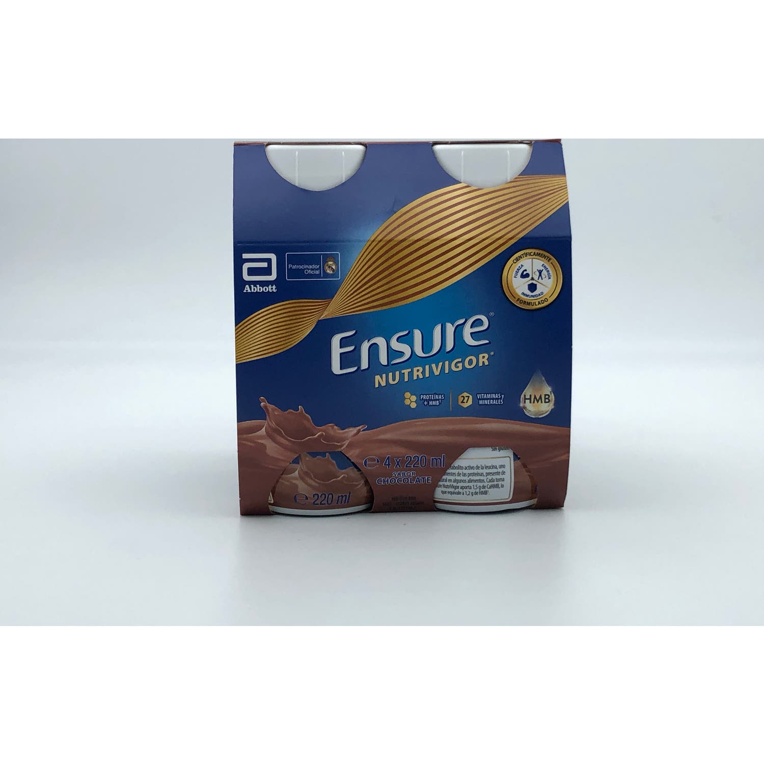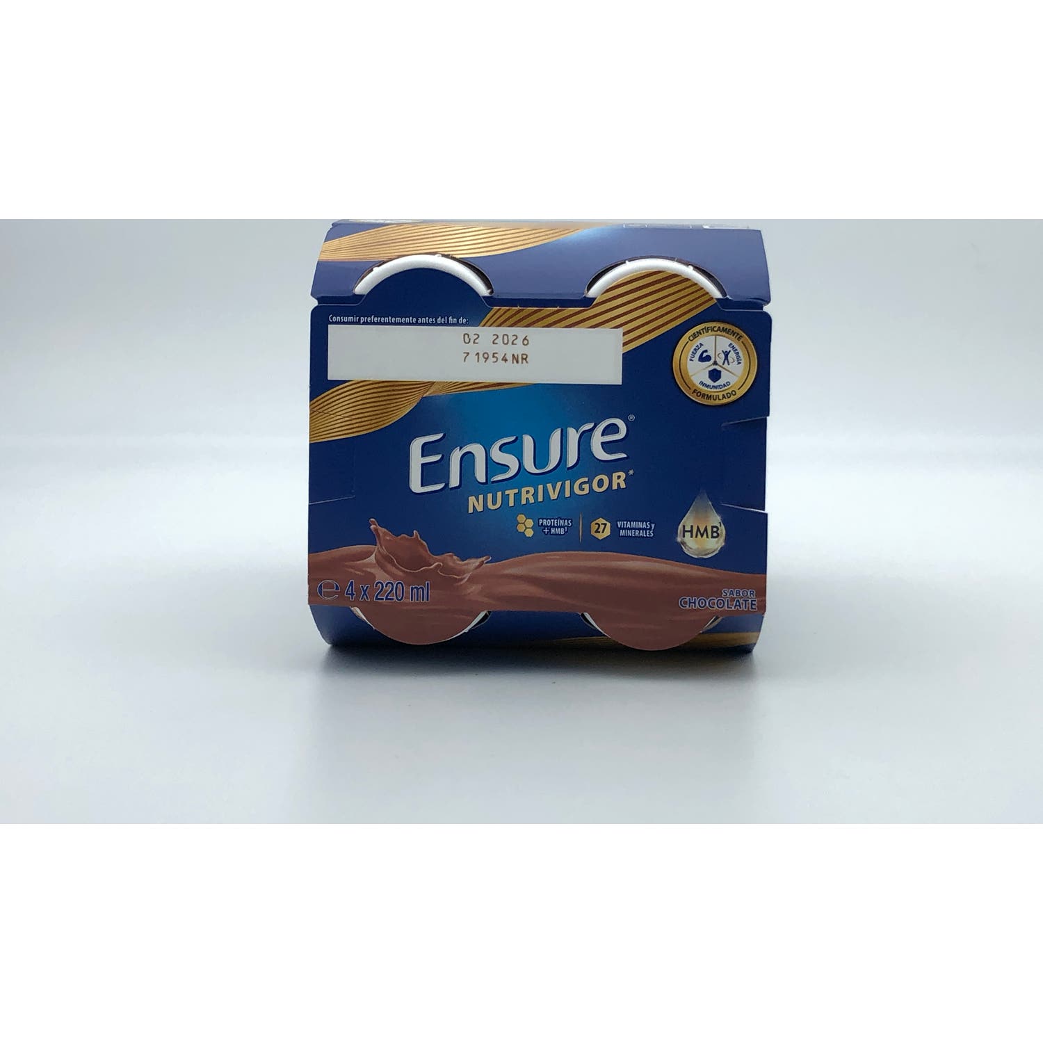 Ensure Nutrivigor Sabor Chocolate 4x220ml es un complemento nutricional para adultos en formato bebible que ayuda a disminuir la fatiga y el cansancio y a mantener la calidad ósea y de los músculos.