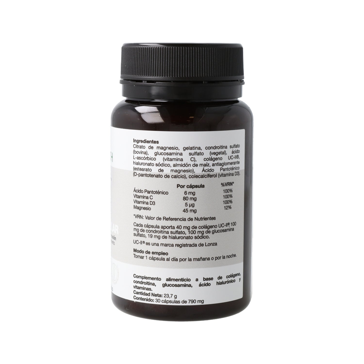 Complemento alimenticio que contiene una combinación de glucosamina, colágeno hidrolizado y condroitina. Contribuye al cuidado de las articulaciones, ayuda a lubricarlas y mejorar la movilidad. Además, la vitamina D3 presente en la fórmula facilita la correcta absorción de calcio en el organismo. Indicado para adultos.