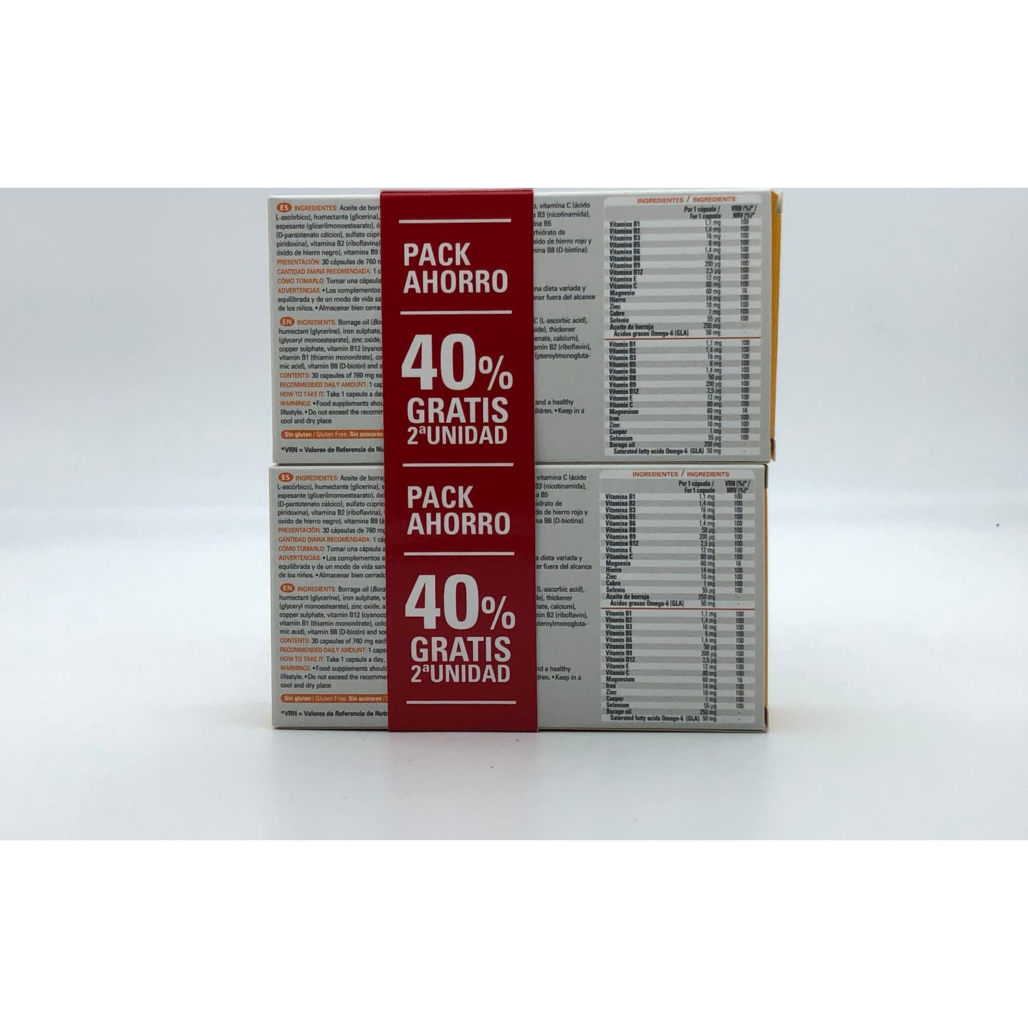 Complemento alimenticio compuesto por vitaminas y minerales que aporta energía, con vitaminas B2, B3, B5, B6, B12 y C junto con hierro.