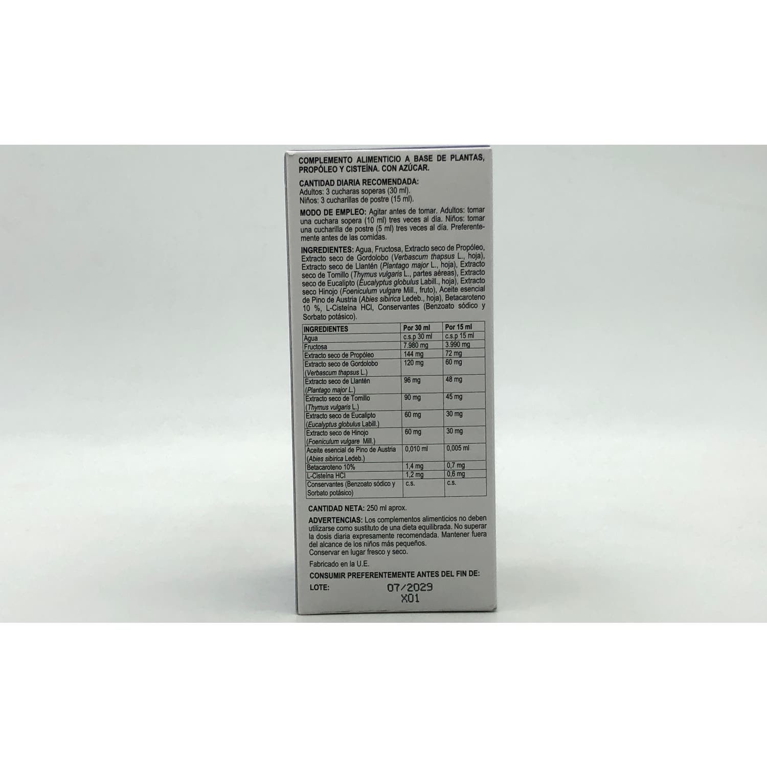 Formulado a base de extracto de gordolobo, propóleo, llantén, hinojo, eucalipto y tomillo.