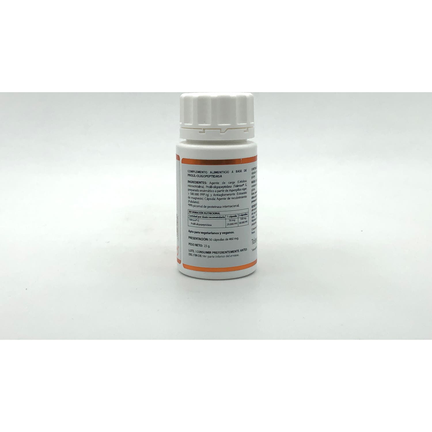Complemento alimenticio que ayuda a mejorar la descomposición de los alimentos y a mantener una buena digestión del gluten. Formulado a base de prolil-oligopeptidasa, unas enzimas obtenidas del hongo Aspergillus niger, que ayuda a activar el metabolismo de los macronutrientes.