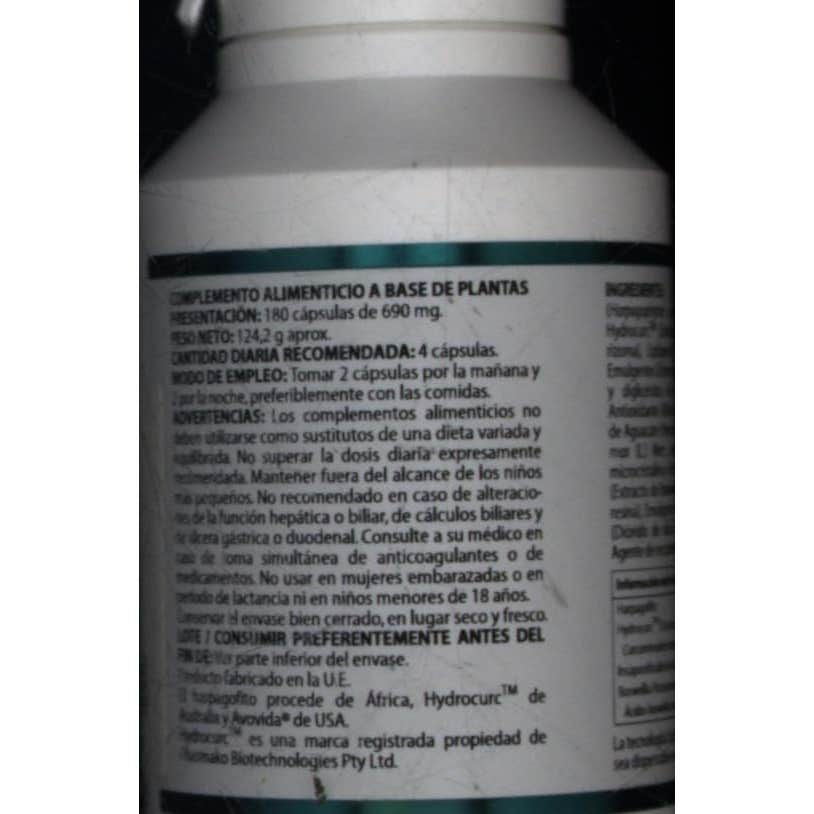 Complemento alimenticio a base de extractos de Harpagofito, Boswellia y Curcuma que actúa como ayuda para combatir las molestias articulares y musculares.