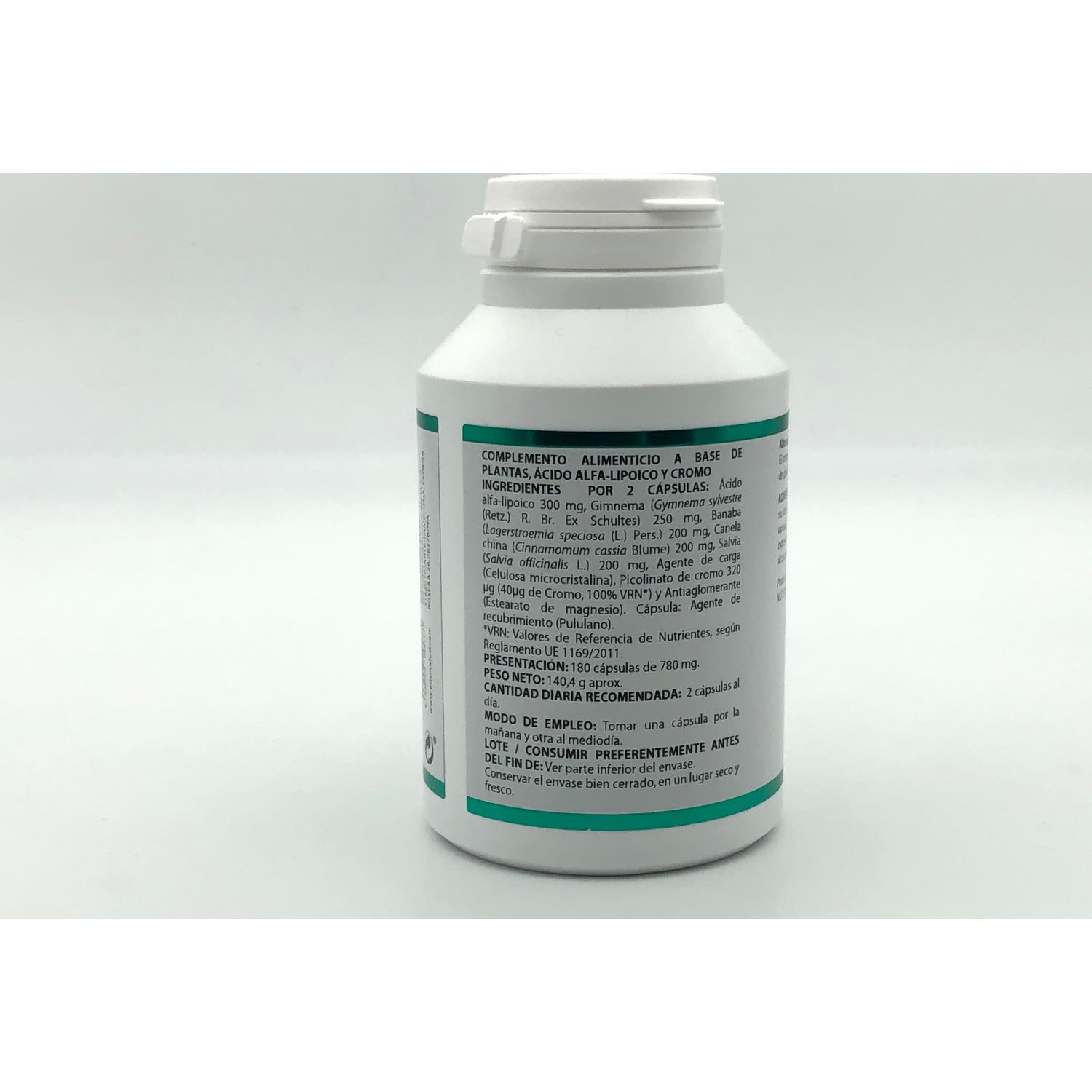 ÁCIDO ALFA-LIPOICO. GIMNEMA. BANABA. CANELA CHINA. SALVIA. PICOLINATO DE CROMO.