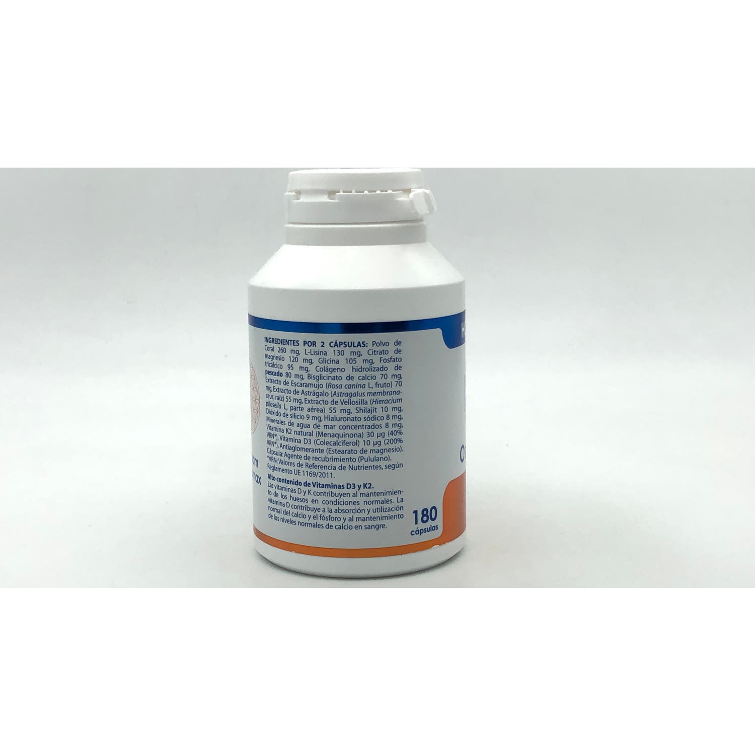 Por 1 cápsula: colágeno hidrolizado de pescado (peso molecular 5000 Da, 90% proteínas) (40 mg), hialuronato sódico (4 mg), polvo de coral (50% carbonato de calcio, 40% carbonato de magnesio, 20% calcio, 10% magnesio) (130 mg), citrato de magnesio tribásico anhidro (15-16,5 % magnesio) (60 mg), fosfato tricálcico (34-40 % calcio, 17-21% fósforo) (47,5 mg), bisglicinato de calcio (26% calcio) (35 mg), PrimaVie® (shilajit purificado, 50% ácidos fúlvicos, 10,3% dibenzo-α-pironas más dibenzo-α-pironas cromoproteínas) (5 mg), dióxido de silicio (46,19% silicio) (4,5 mg), D-MINNERALZ® (minerales de agua de mar concentrados, 45.000-54.000 ppm magnesio) (4 mg), vitamina K2 natural (menaquinona, 1000 ppm) (15 mg), vitamina D3 (colecalciferol, 100.000 UI/g) (2 mg), L-Lisina (65 mg), glicina (52,5 mg), escaramujo extracto seco (Rosa canina L, fruto, 0,2% ácido ascórbico) (35 mg), vellosilla extracto seco (Hieracium pilosella L., parte aérea, 0,4 % flavonoides totales expresados como vitexina, ratio aprox 4:1) (27,5 mg), astrágalo extracto seco (Astragalus membranaceus Bunge, raíz, 16% polisacáridos, ratio 1:6/8) (27,5 mg).