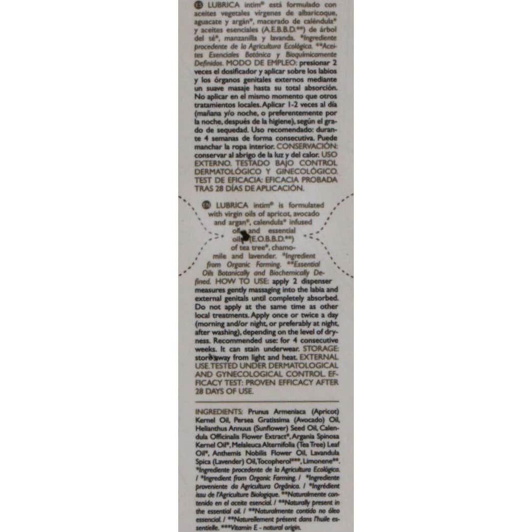 Aceite 100% natural, elaborado a base de aceites vegetales vírgenes de albaricoque, aguacate y argán, que está indicado para usar como hidratante íntimo, ayudando a mejorar la sensación de sequedad vaginal.