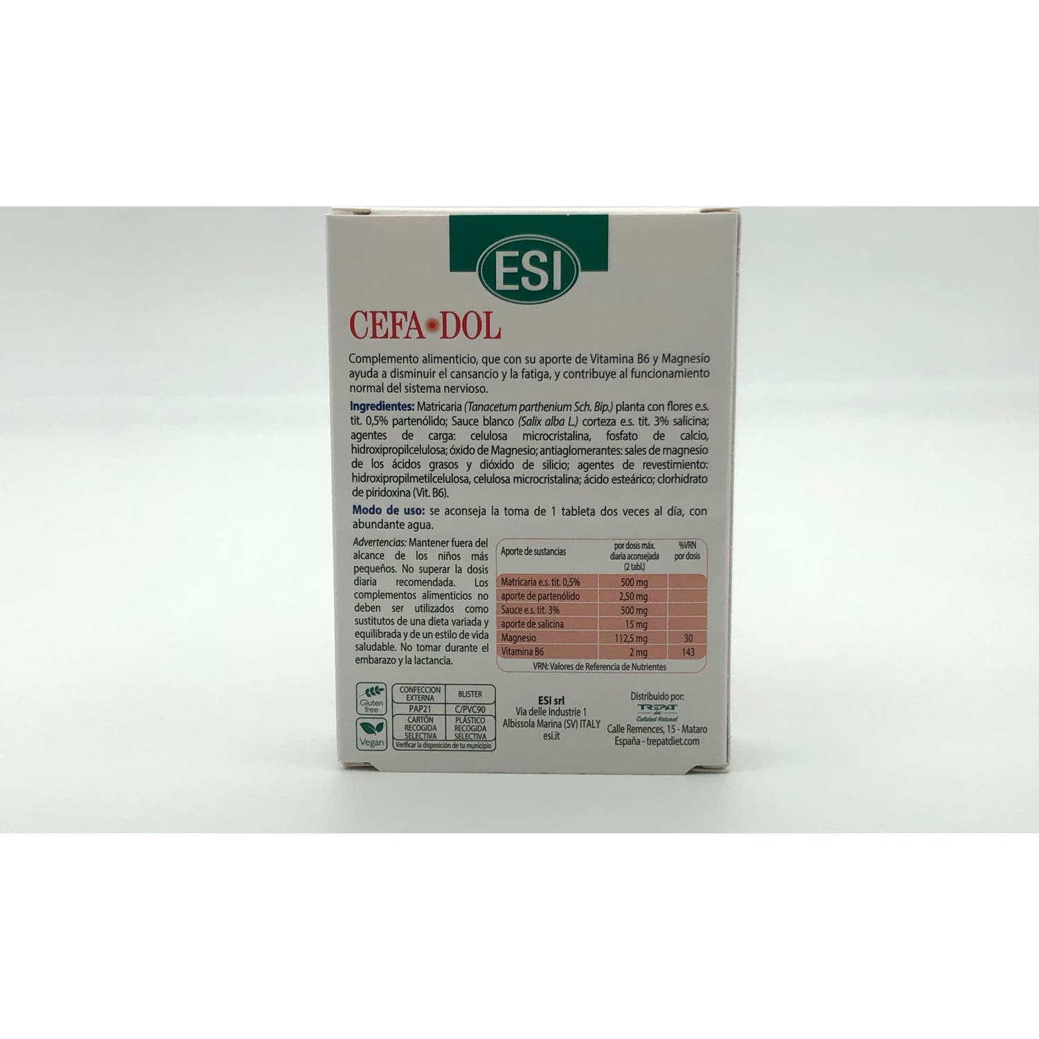 Para prevenir la aparición de cefalea o migraña, ESI ha creado Cefadol. Gracias a su contenido en matricaria (Tanacetum parthenium), sauce blanco (Salix alba) tiene un efecto antiinflamatorio y analgésico preventivo.