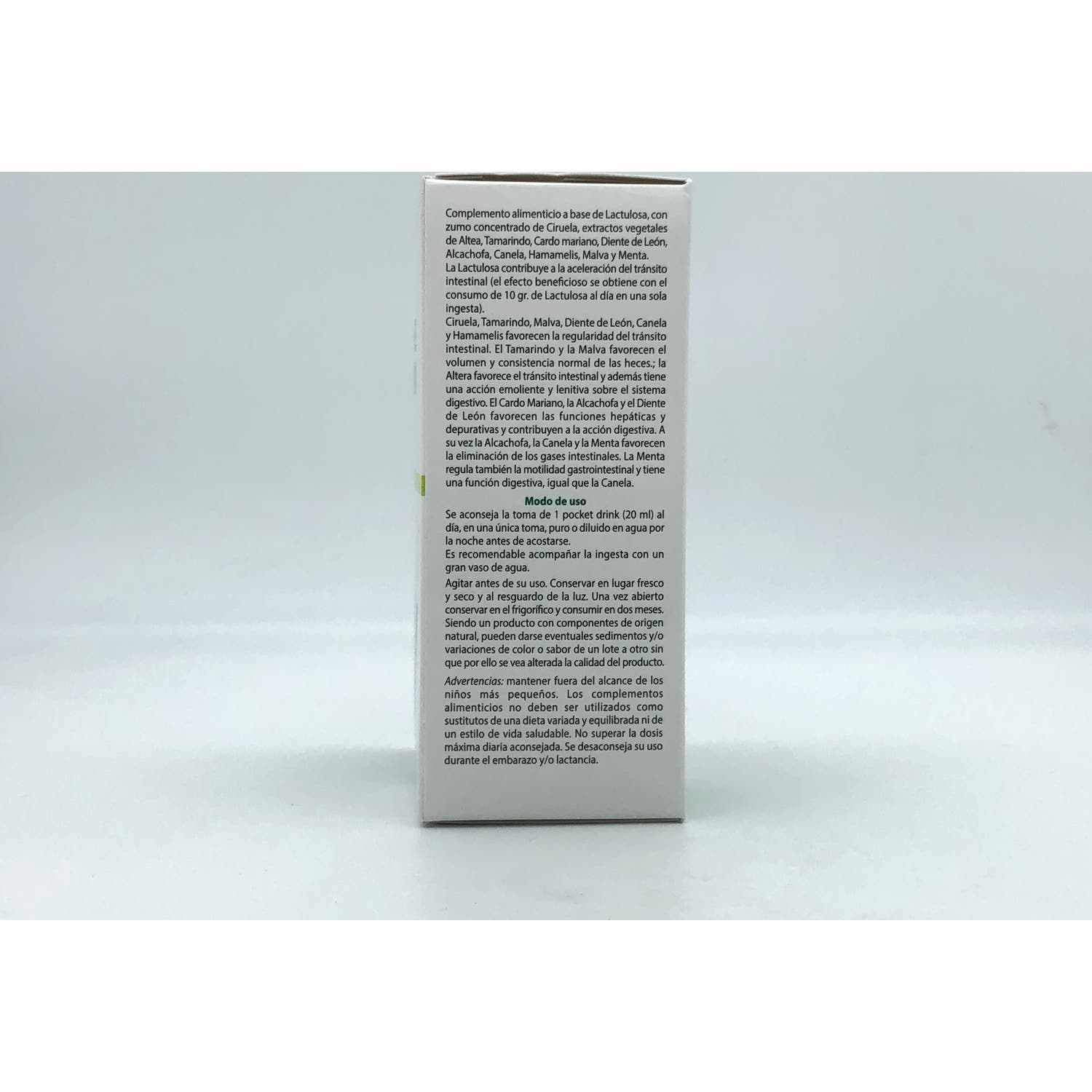 Complemento alimenticio en envases monodosis a base de lactulosa y extractos vegetales que contribuye a apoyar la función y el tránsito intestinal. Tiene un agradable sabor a cereza.