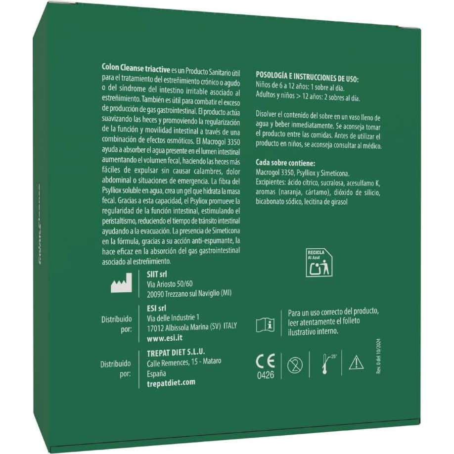 ESI Colon Cleanse Triactive 20 Sobres es un producto diseñado para ofrecer apoyo en situaciones de estreñimiento crónico y para ayudar a reducir la producción excesiva de gas en el aparato gastrointestinal. Este complemento se presenta en sobres, facilitando su dosificación y consumo.