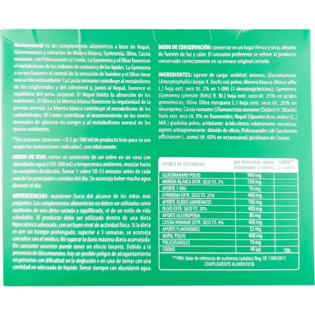ESI Metacontrol no contiene gluten, lactosa, derivados lácteos, azúcares añadidos ni organismos genéticamente modificados, lo que lo hace apto para vegetarianos y veganos. Se recomienda consultar con un profesional de la salud para obtener más información sobre su uso.