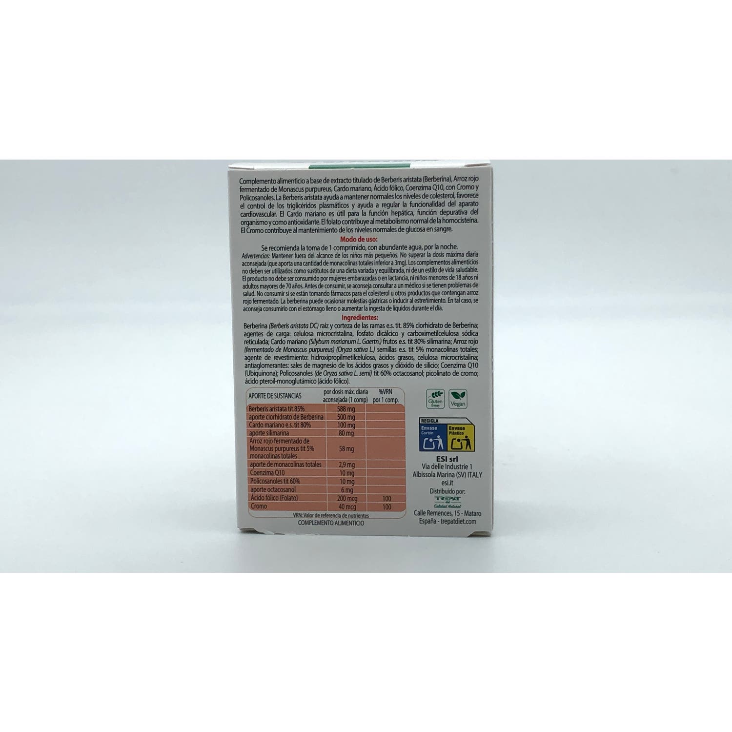 Fórmula a base de: extracto titulado de Berberis aristata, arroz rojo fermentado por el monascus purpureus, cardo mariano, ácido fólico, coenzima Q10, cromo y policosanoles. Favorece el control de los triglicéridos plasmáticos y contribuye a regular la funcionalidad del sistema cardiovascular.