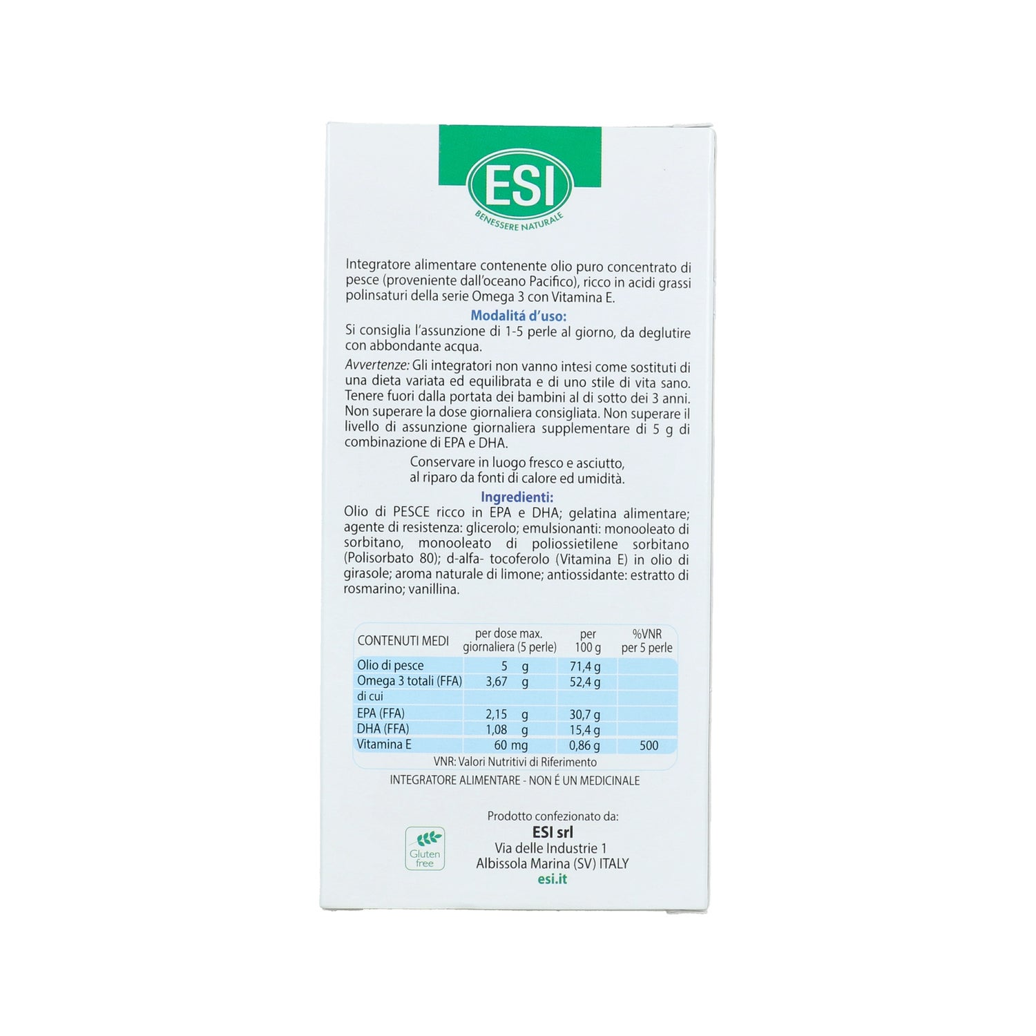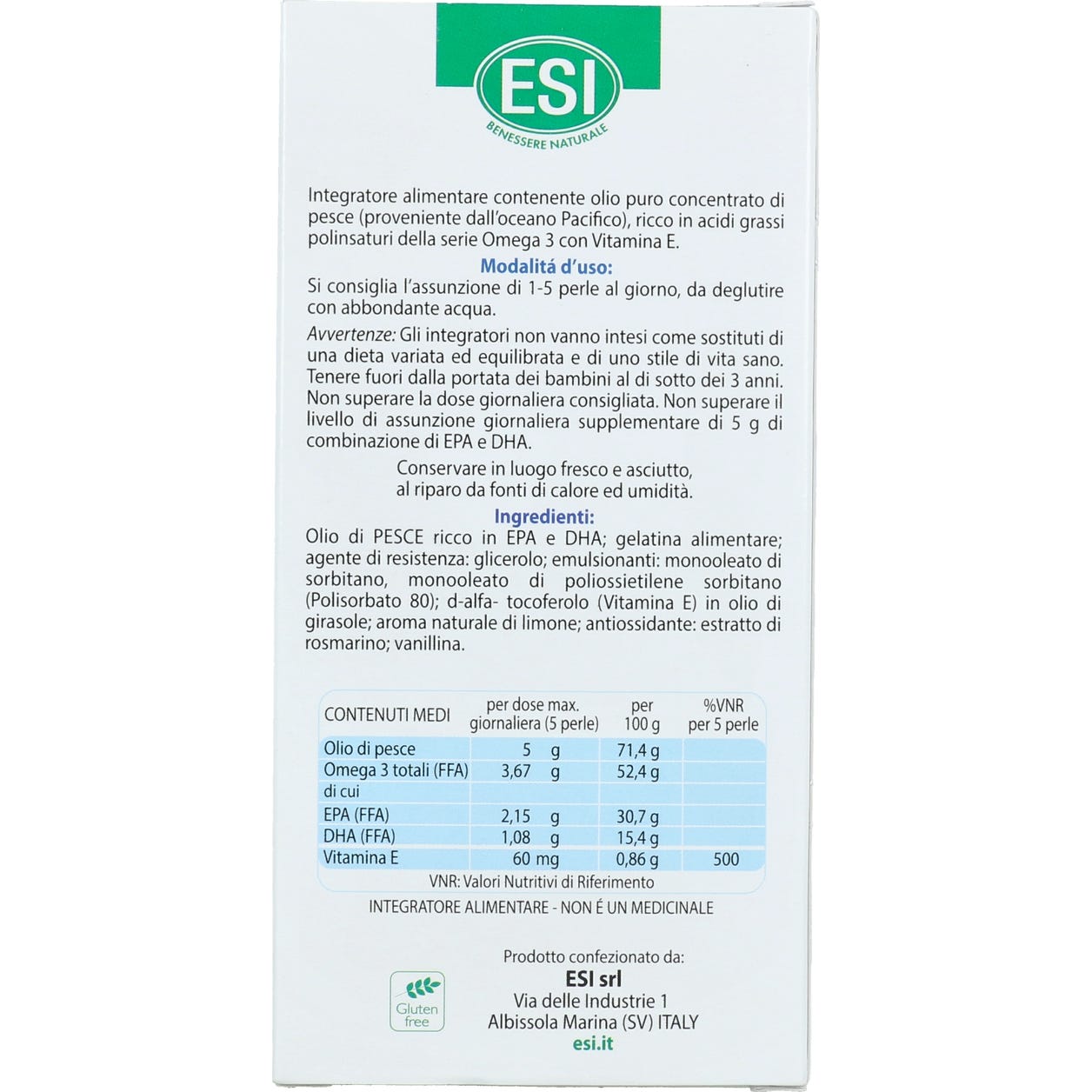 ESI Omega 3 Extra Pure 120 Perlas es un complemento alimenticio a base de aceite de pescado concentrado, que proporciona un aporte extra de Omega 3 y Vitamina E.