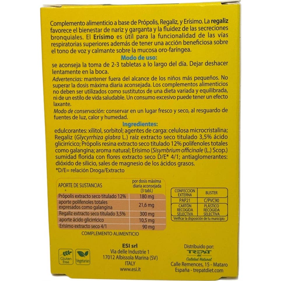 ESI Propolaid PropolGola Limón 30 Tabletas es un complemento natural formulado a base de propóleo, diseñado para favorecer el bienestar de la nariz y la garganta. Este producto destaca por su composición, que incluye: