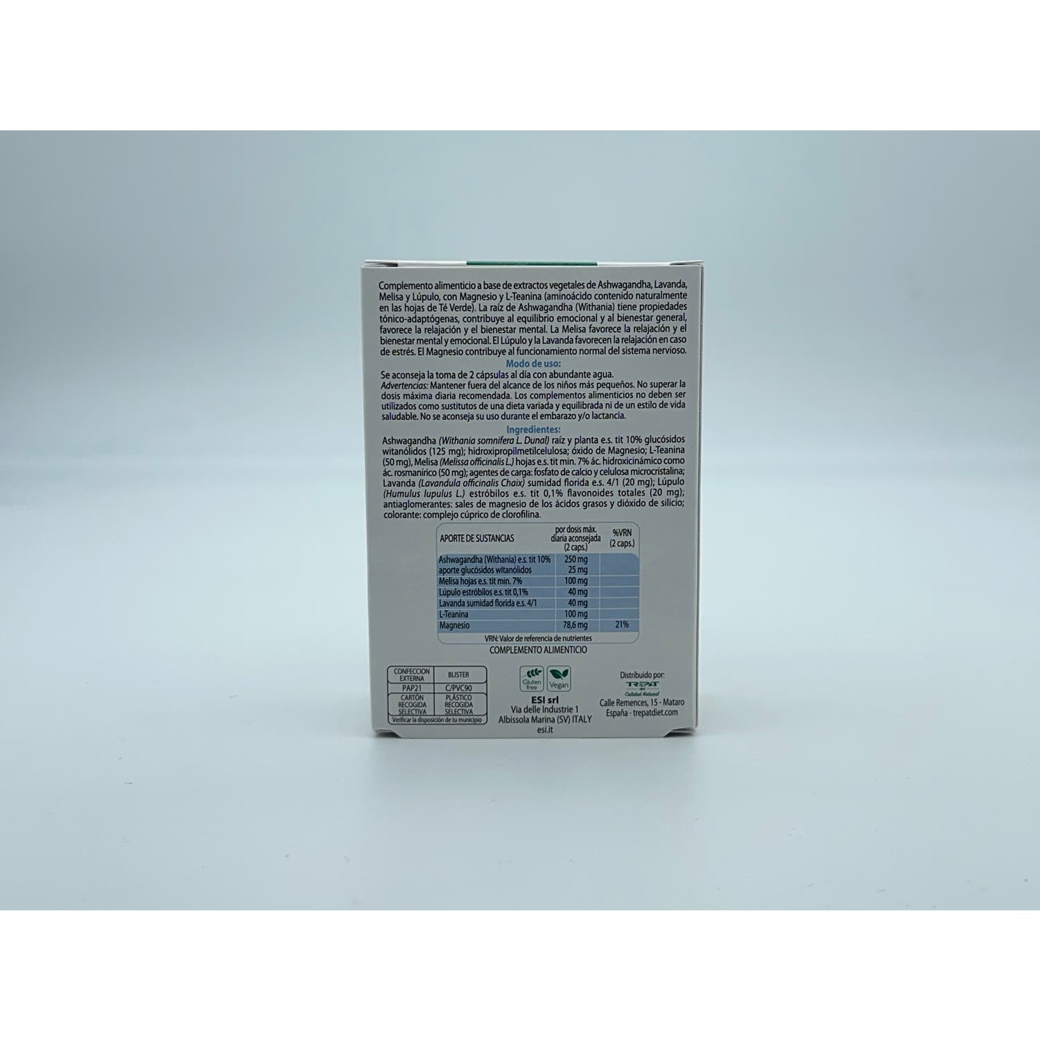 Complemento alimenticio presentado en forma de cápsulas, que ayuda a combatir el estrés físico y mental. Favorece la relajación y el bienestar mental de manera natural.
