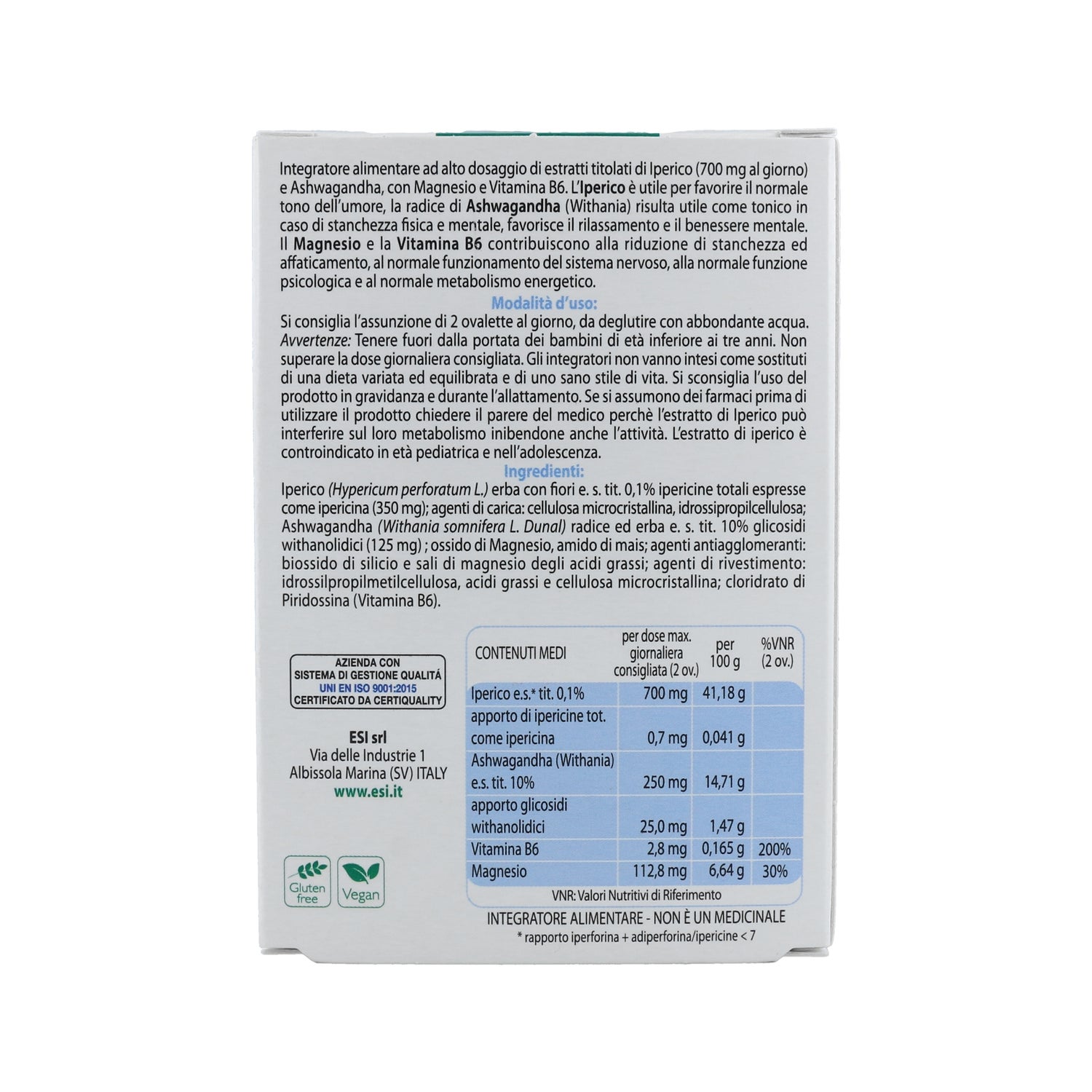 Complemento alimenticio presentado en forma de cápsulas, que ayuda combatir el estrés físico y mental. Favorece la relajación y el bienestar de manera natural. Está compuesto por ingredientes activos; el hipérico, contribuye a mantener el balance emocional, favoreciendo el humor normal; la ashwagandha, aporta relajación y bienestar a la mente; el magnesio y la vitamina B6, reducen el cansancio y la fatiga. Indicado para mejorar los estados de ánimo. Adecuado para a partir de los 18 años de edad. Apto para veganos y celíacos. No tomar durante el embarazo ni la lactancia.