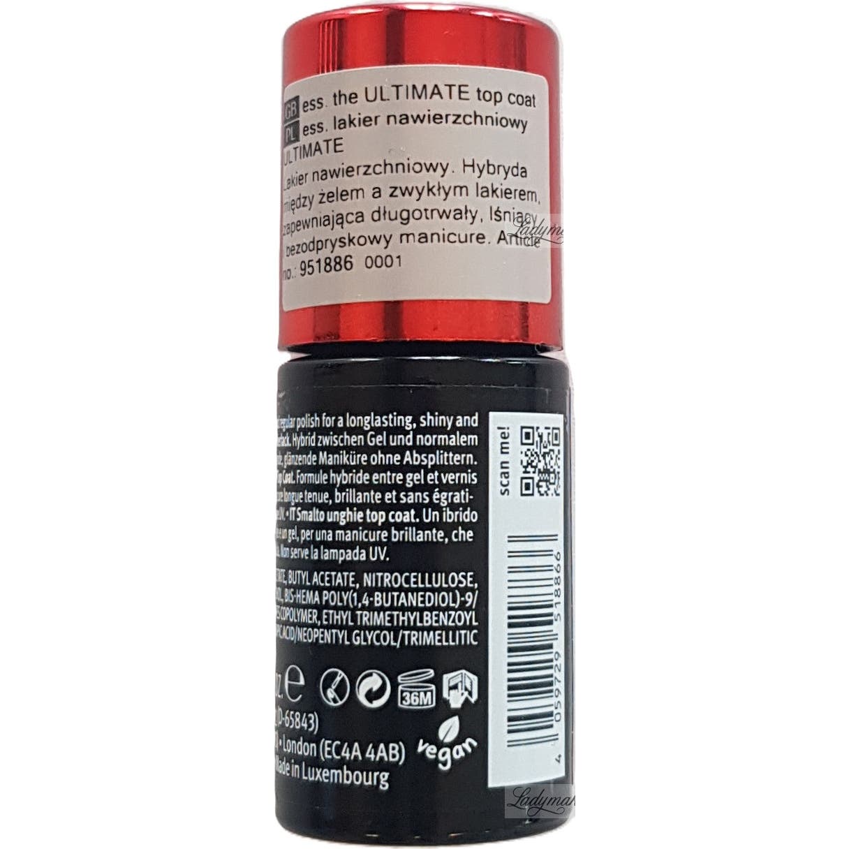 Essence Top Coat The Ultimate Gel Híbrido 8ml es la solución perfecta para realzar la apariencia de las uñas. Este esmalte de gel híbrido proporciona un brillo deslumbrante que perdura durante varios días.