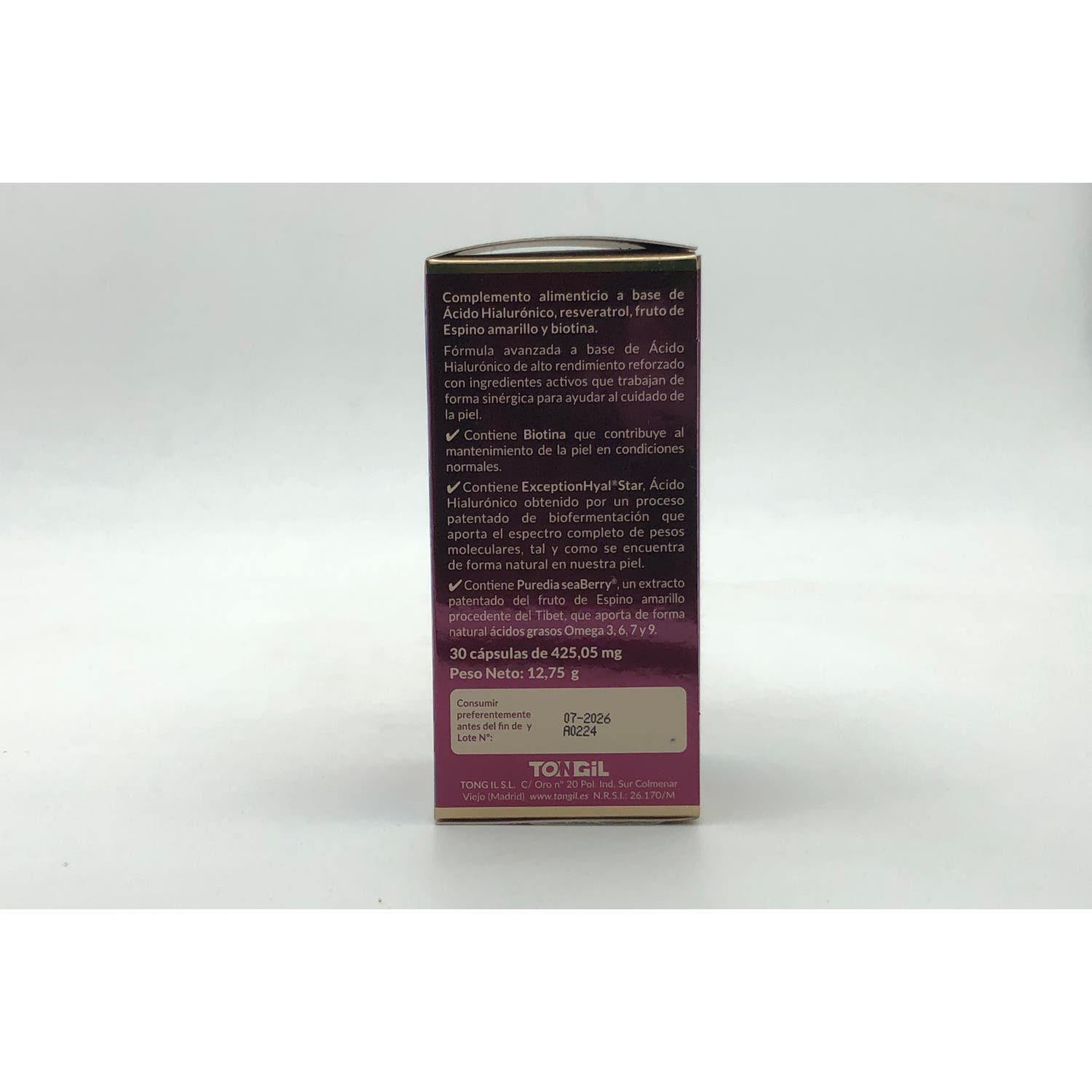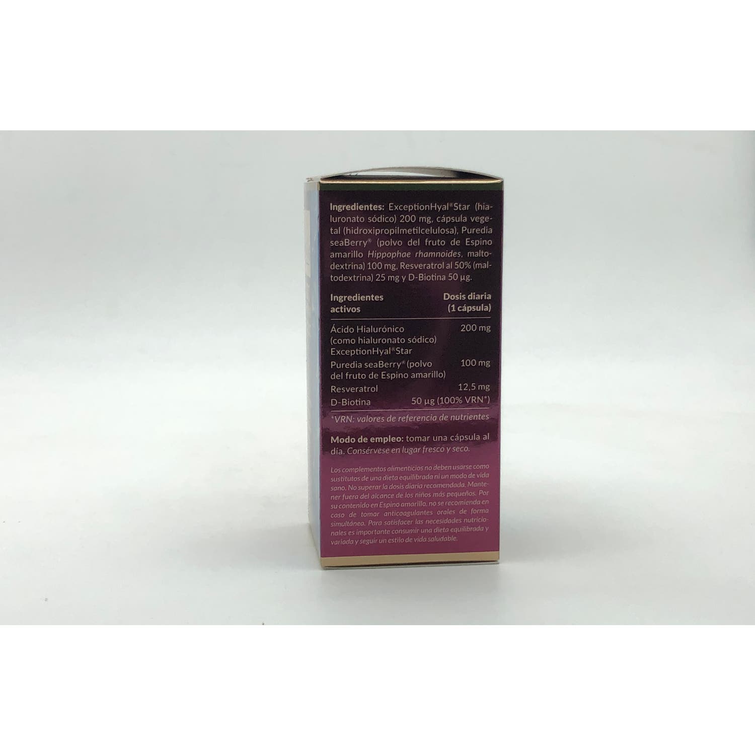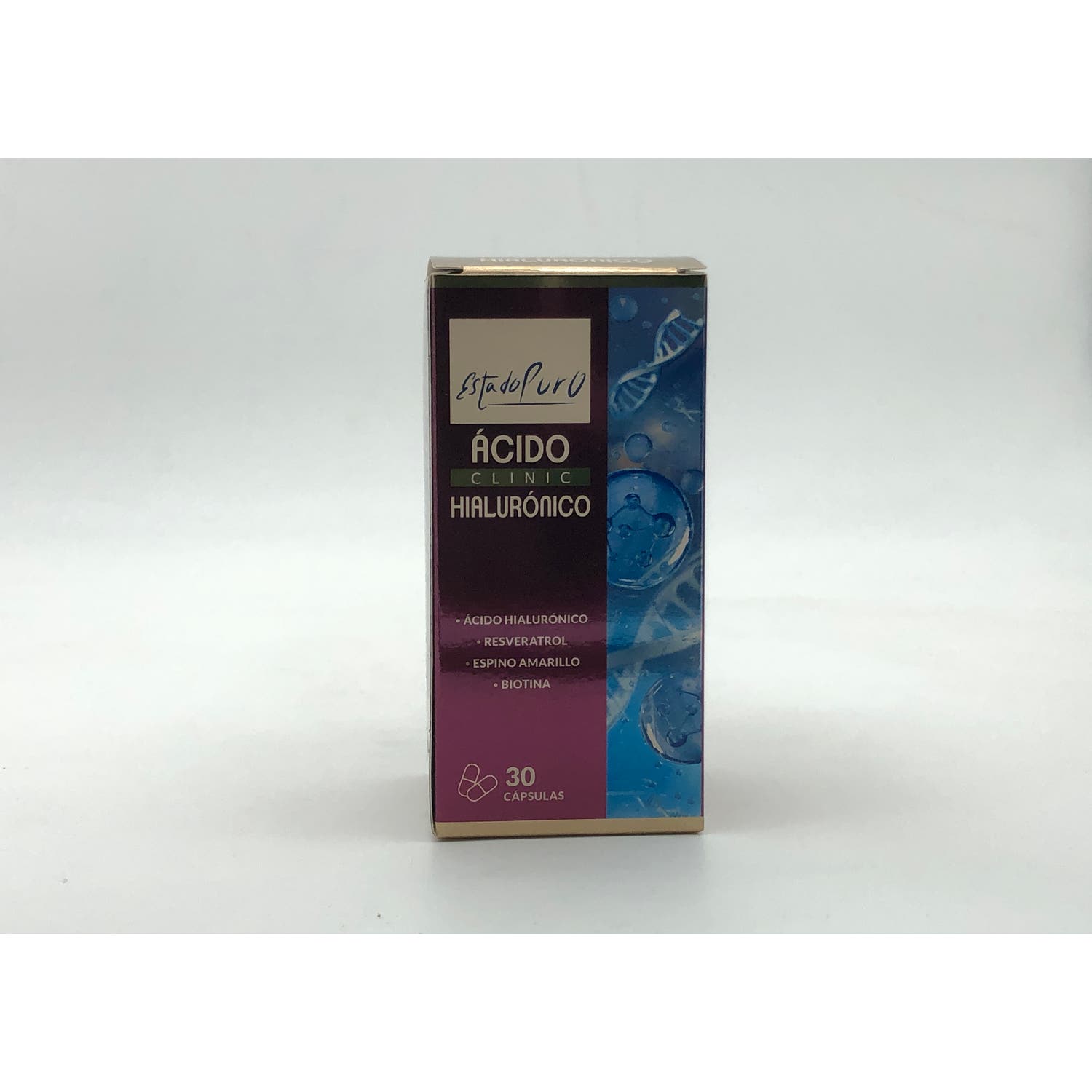 Estado Puro Ácido Hialurónico Clinic 30caps es un complemento alimenticio formulado a base de ácido hialurónico resveratrol, fruto de Espino amarillo y biotina.