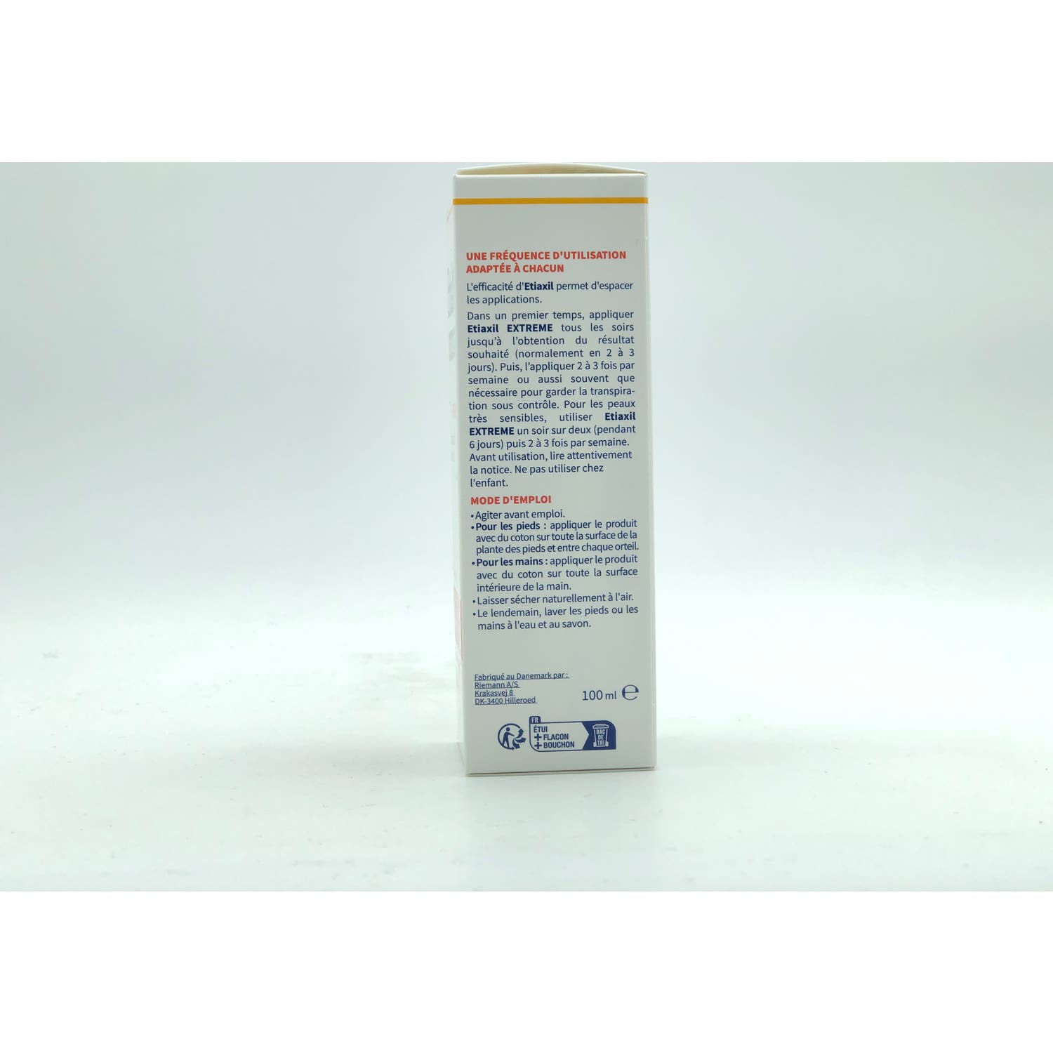 Etiaxil Détranspirant Pieds Peaux Normales 100ml es una loción antitranspirante que ayuda a frenar la transpiración excesiva de los pies.Al contener una alta concentración de principios activos antitranspirantes, esta loción antihumedad y antiolor ayuda a descansar las glándulas sudoríparas, que dejan de producir sudor durante unos días. Sin perfume, es compatible con el uso diario de un desodorante o perfume.Indicado para pieles normales.
