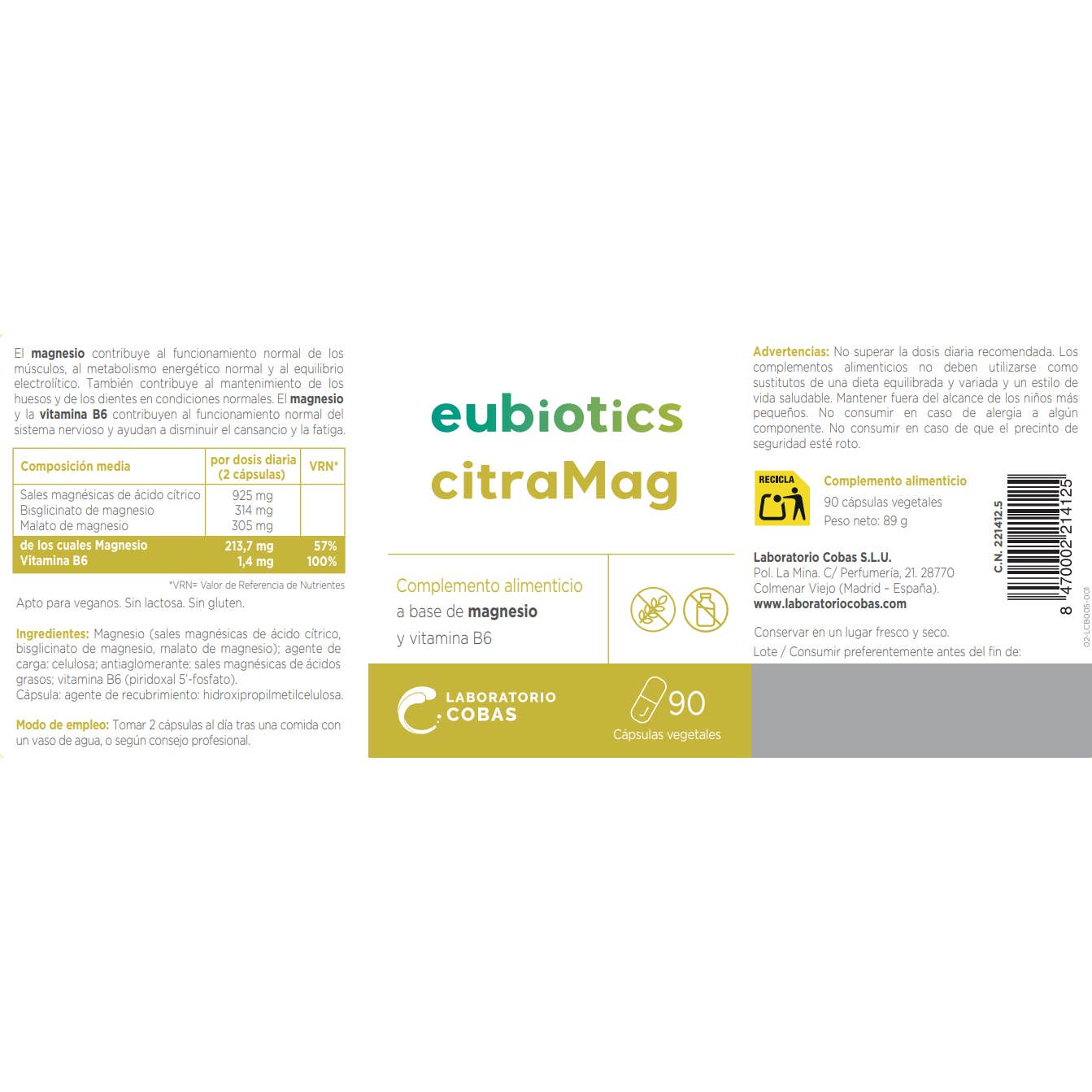 eubiotics® citraMag es un complemento alimenticio que combina tres formas de magnesio altamente biodisponibles: