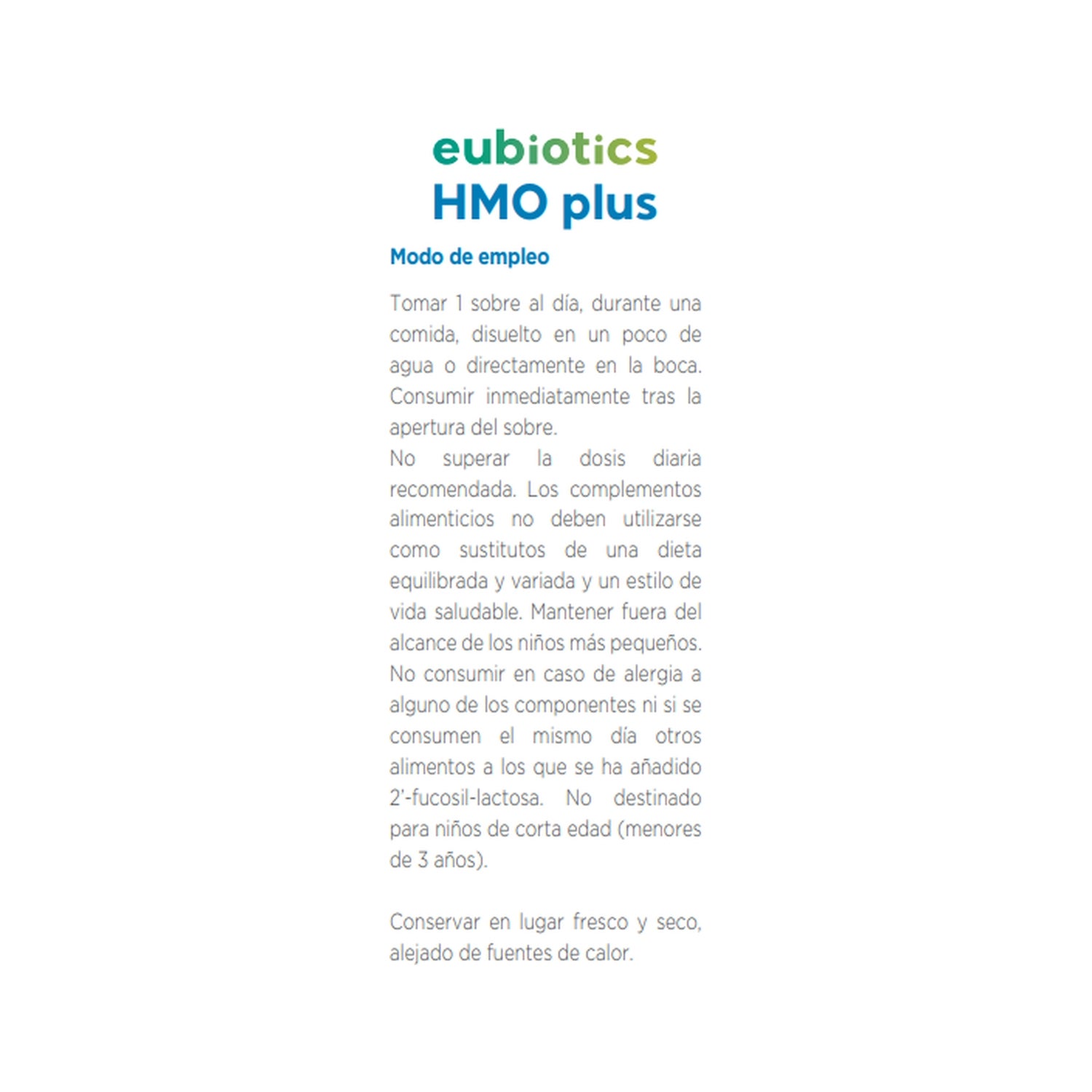 Eubiotics HMO Plus 30 sobres es un complemento alimenticio con Bifidobacterium animalis subsp. lactis (BB-12®), Bifidobacterium longum subsp. infantis (ISTILOS®) y oligosacáridos de la leche humana (HMO) 2´fucosil-lactosa (MyOli®)