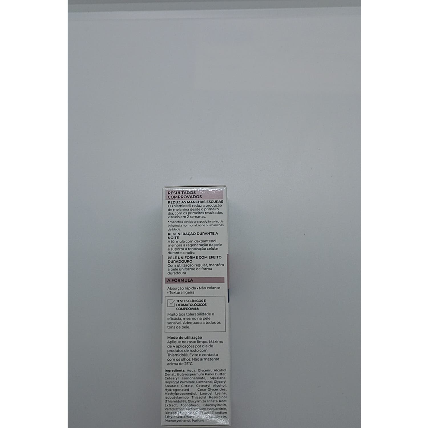 Elaborado a base de Thiamidol, un principio activo que reduce la producción de melanina, así como dexpantenol, que ayuda a regenerar la piel durante la noche. Su formulación está ideada para empezar a ver los primeros resultados después de dos semanas, que pueden mejorar con el uso regular.