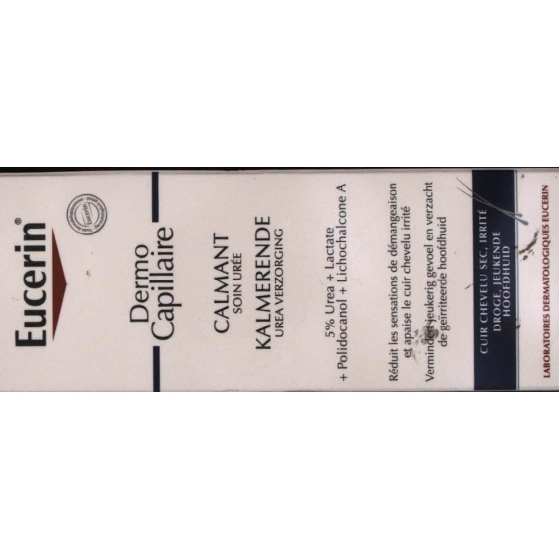 INFORMACIÓNEucerin Tratamiento Calmante Dermo Capilar 5% Urea está indicado para el cuero cabelludo seco e irritado, como complemento de los tratamientos contra la psoriasis. Protege el cuero cabelludo de toda sensación de picor o sequedad. Este tratamiento mejora significativamente el estado del cuero cabelludo y ayuda a equilibrarlo. Además, hidrata instantáneamente el cabello.