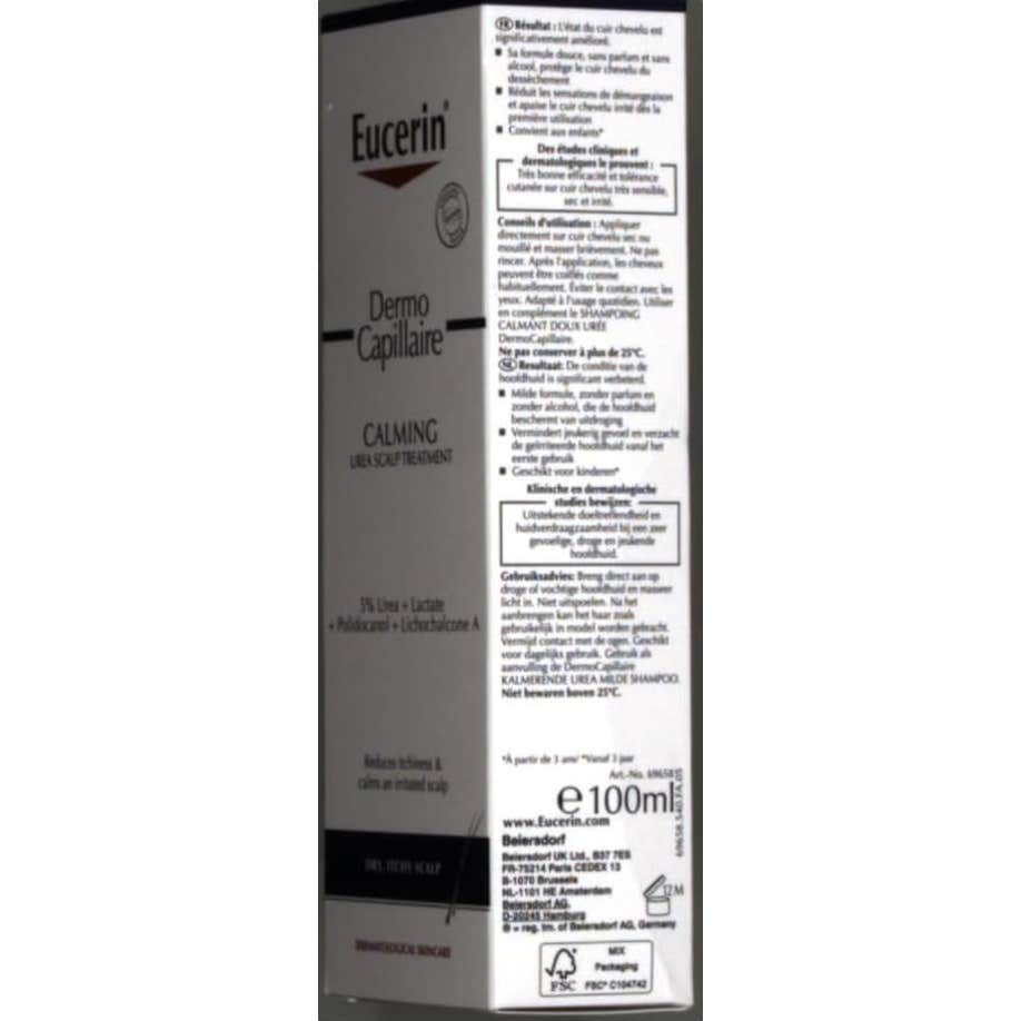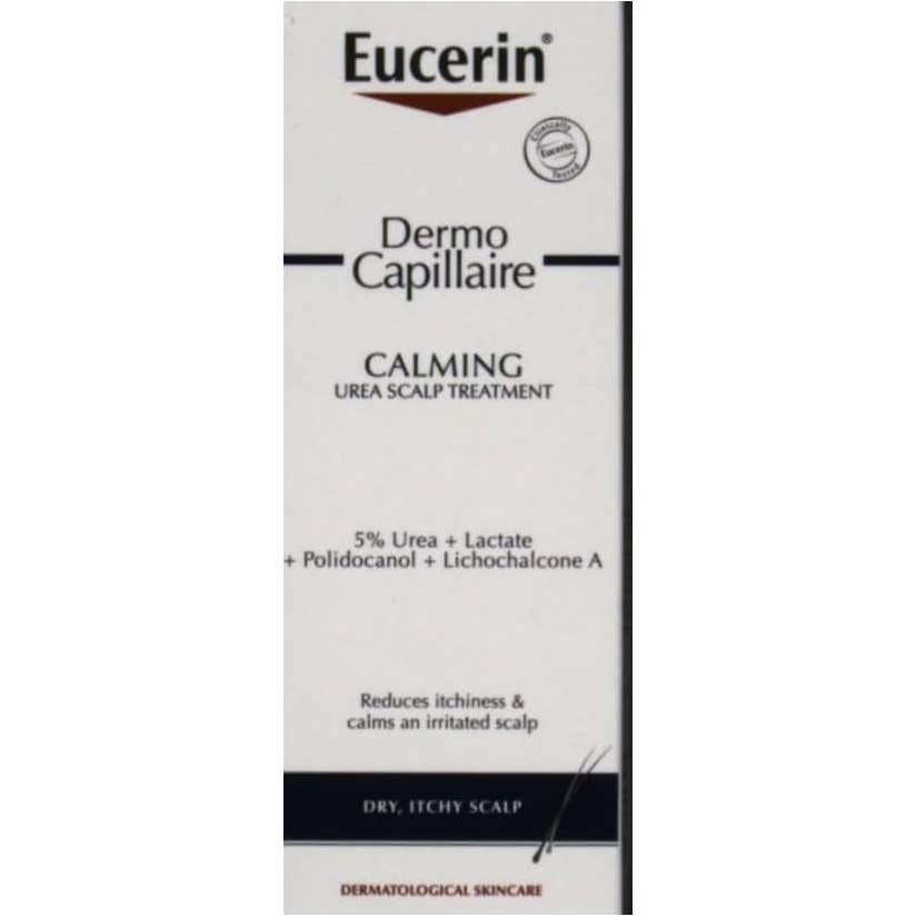 Eucerin Calmante Dermo Tratamiento Capilar 5% Urea está indicado para el cuero cabelludo seco e irritado, como complemento de los tratamientos contra la psoriasis. Protege el cuero cabelludo de toda sensación de picor o sequedad.
