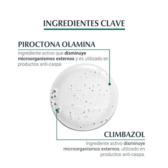 Su composición en climbazol reduce y controla la caspa, y el polidocanol posee efectos calmantes para el cuero cabelludo.