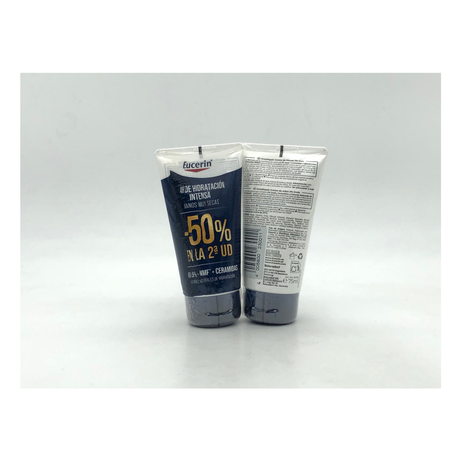 Eucerin Duplo UreaRepair Plus 5%Urea Crema de Manos 2x75ml es una solución para manos secas o muy secas. Ayuda a nutrir en profundidad las manos gracias a su combinación de urea y otros ingredientes humectantes, que ejercen una acción hidratante profunda sobre la piel.