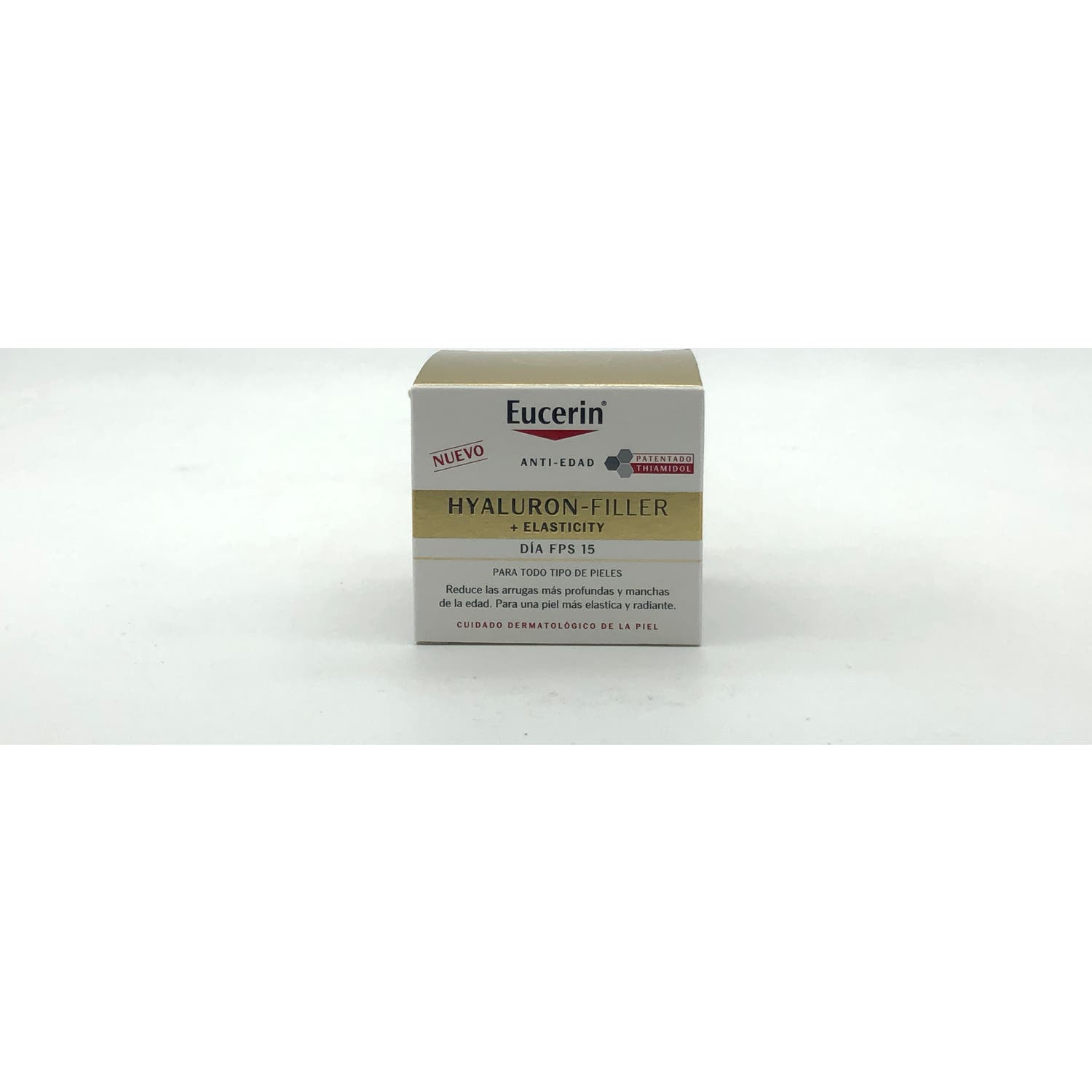 Eucerin Hyaluron-Filler + Elasticity Crema de Día SPF15 50ml es un cosmético antiedad que ayuda a mejorar la elasticidad de la piel, aporta más luminosidad y rellena las arrugas del rostro.